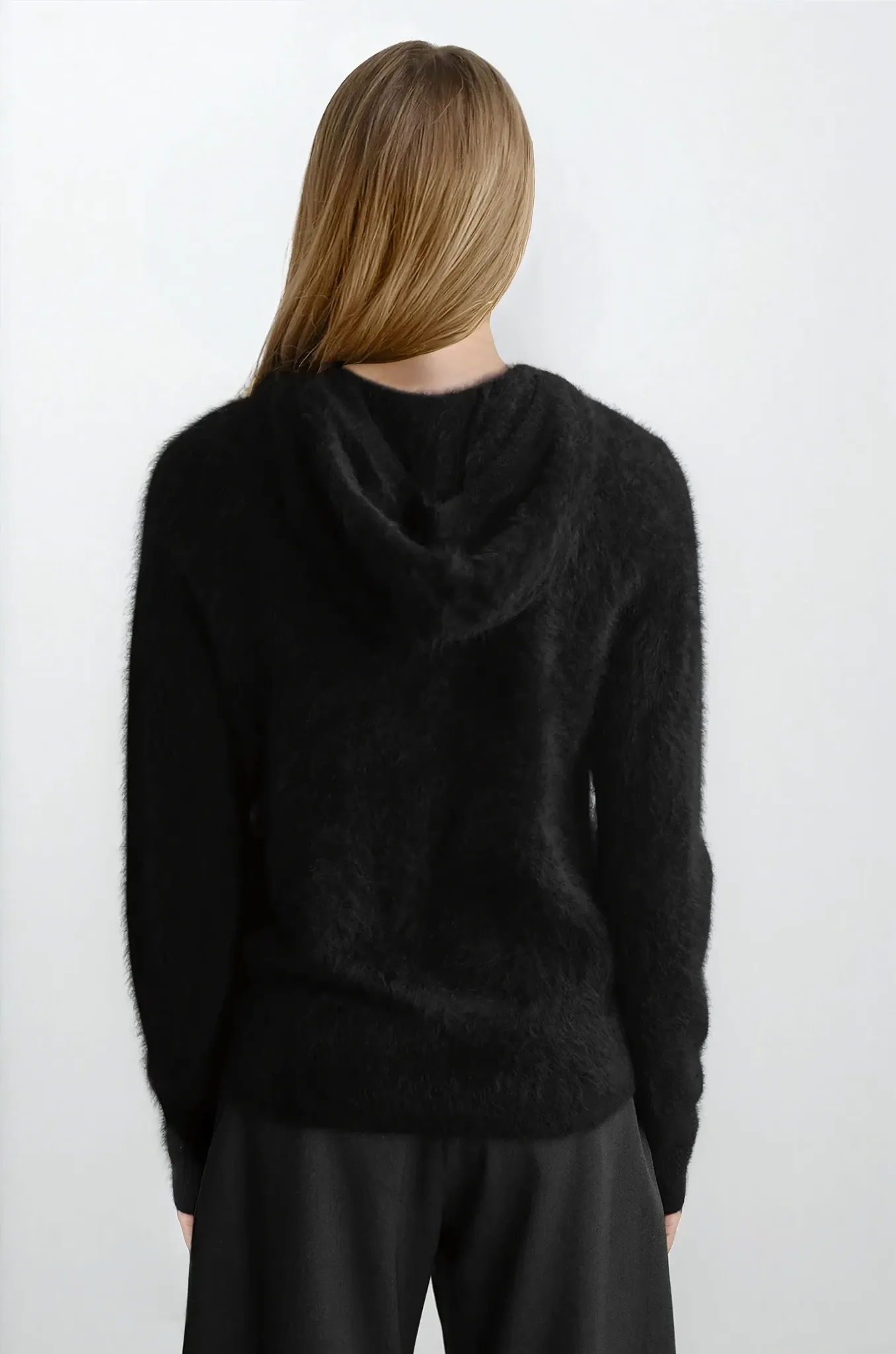 Немногие вещи выглядят так же роскошно, как кашемировое худи с капюшоном. Эта вневременная чёрная модель изготовлена из 100% высококачественного кашемира, сертифицированного по стандарту Good Cashmere Standard®, что обеспечивает мягкость и комфорт. Оно также дополнено ребристыми вставками, облегающими манжетами и бесшовным капюшоном для тепла.