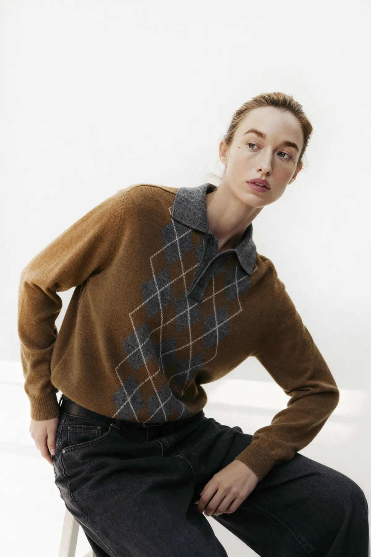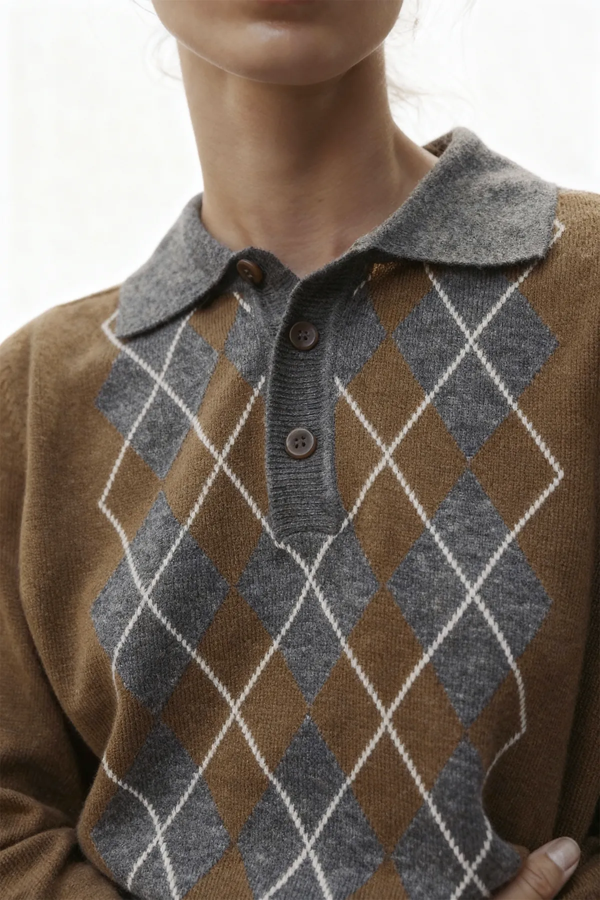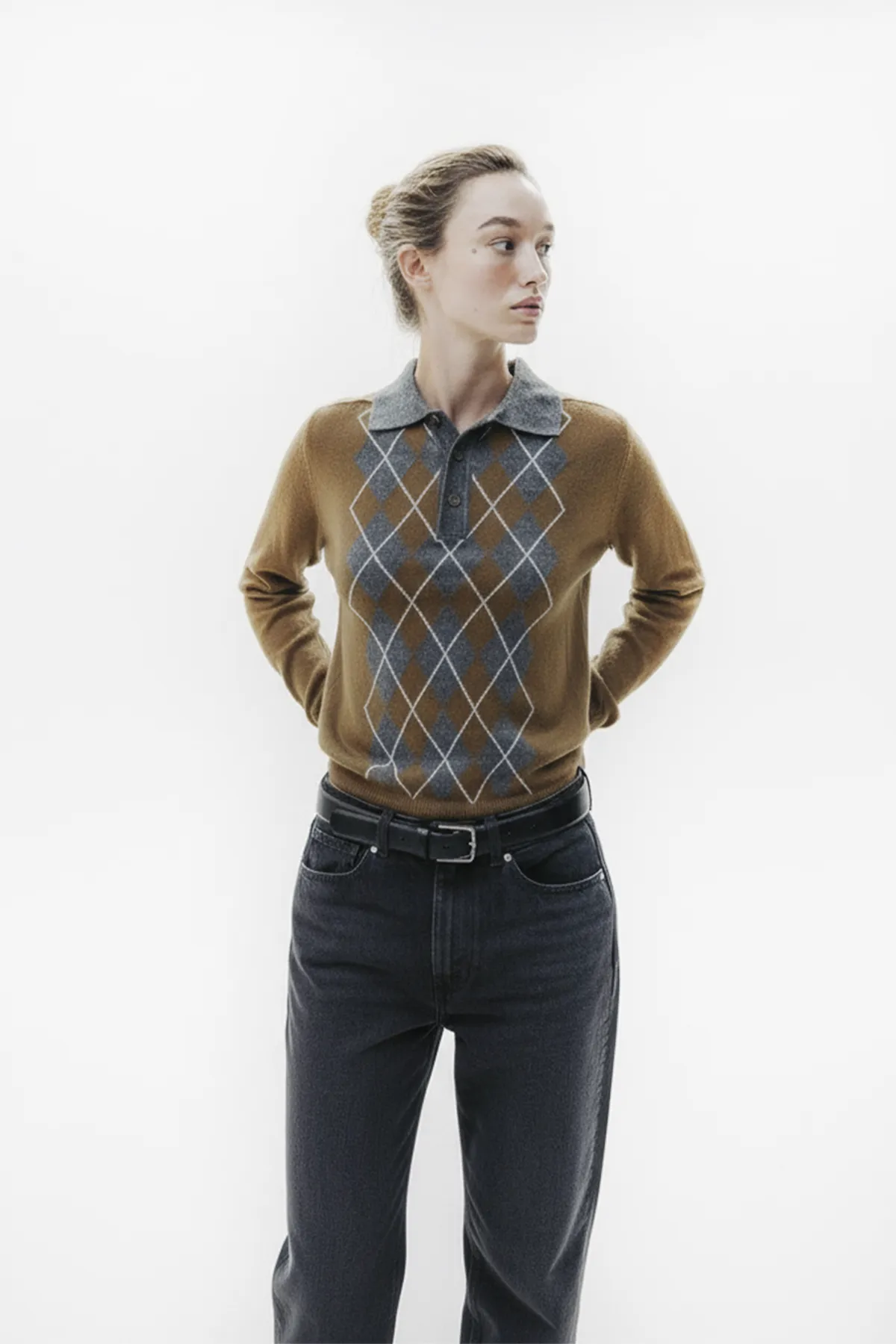 Трикотажный джемпер-поло с узором "ромбы" ZARA