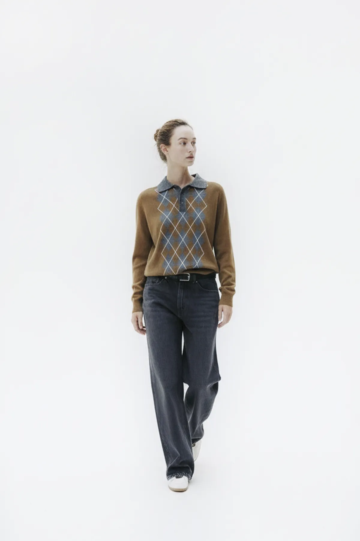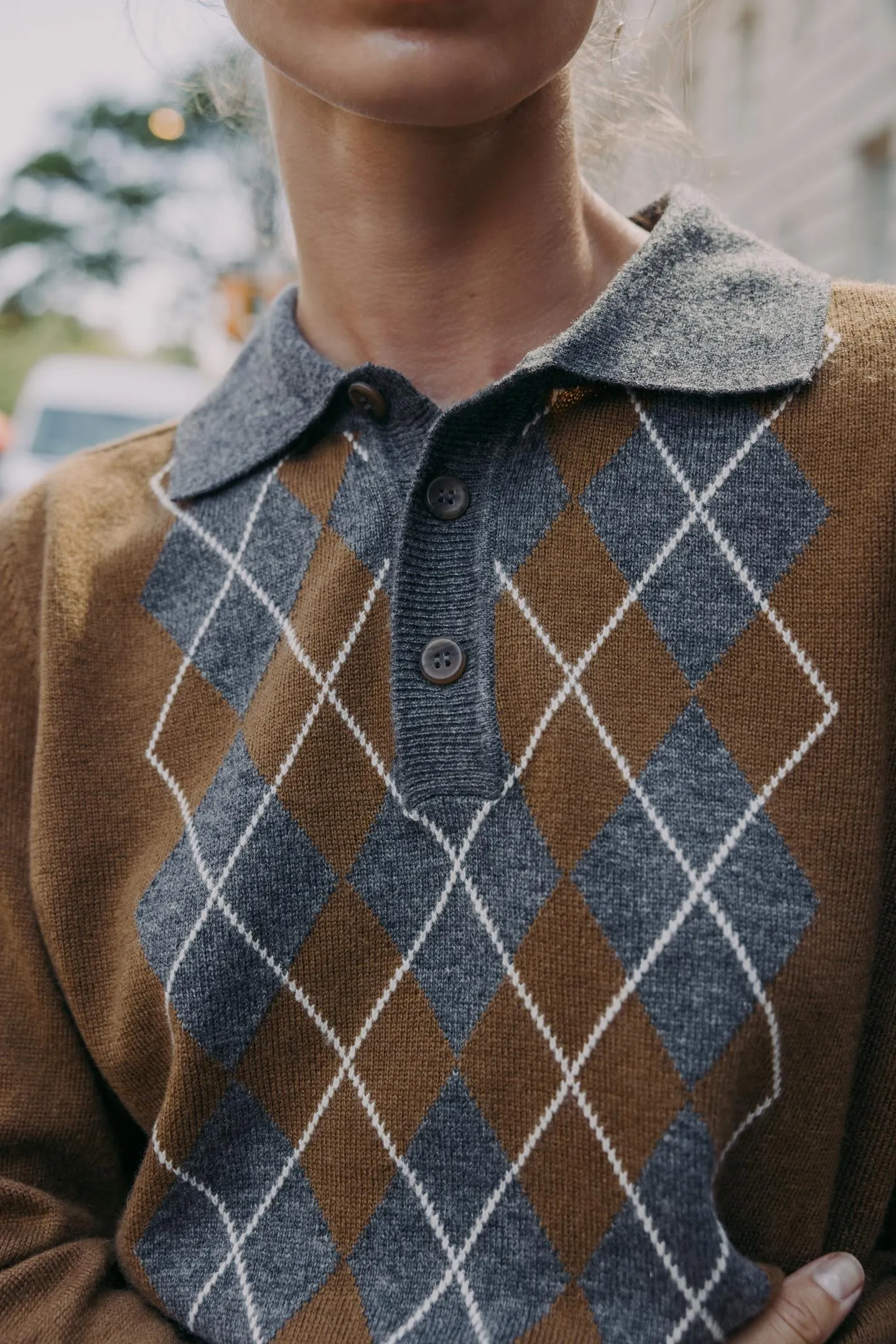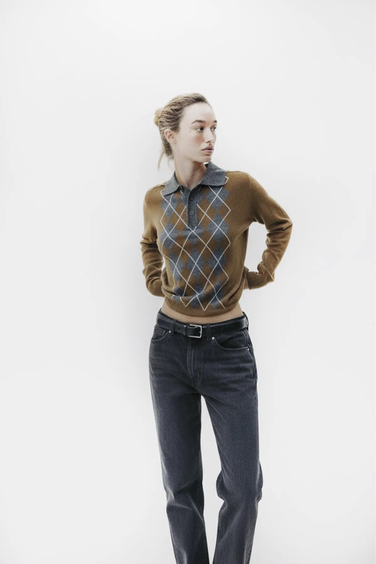 Трикотажный джемпер-поло с узором "ромбы" ZARA
