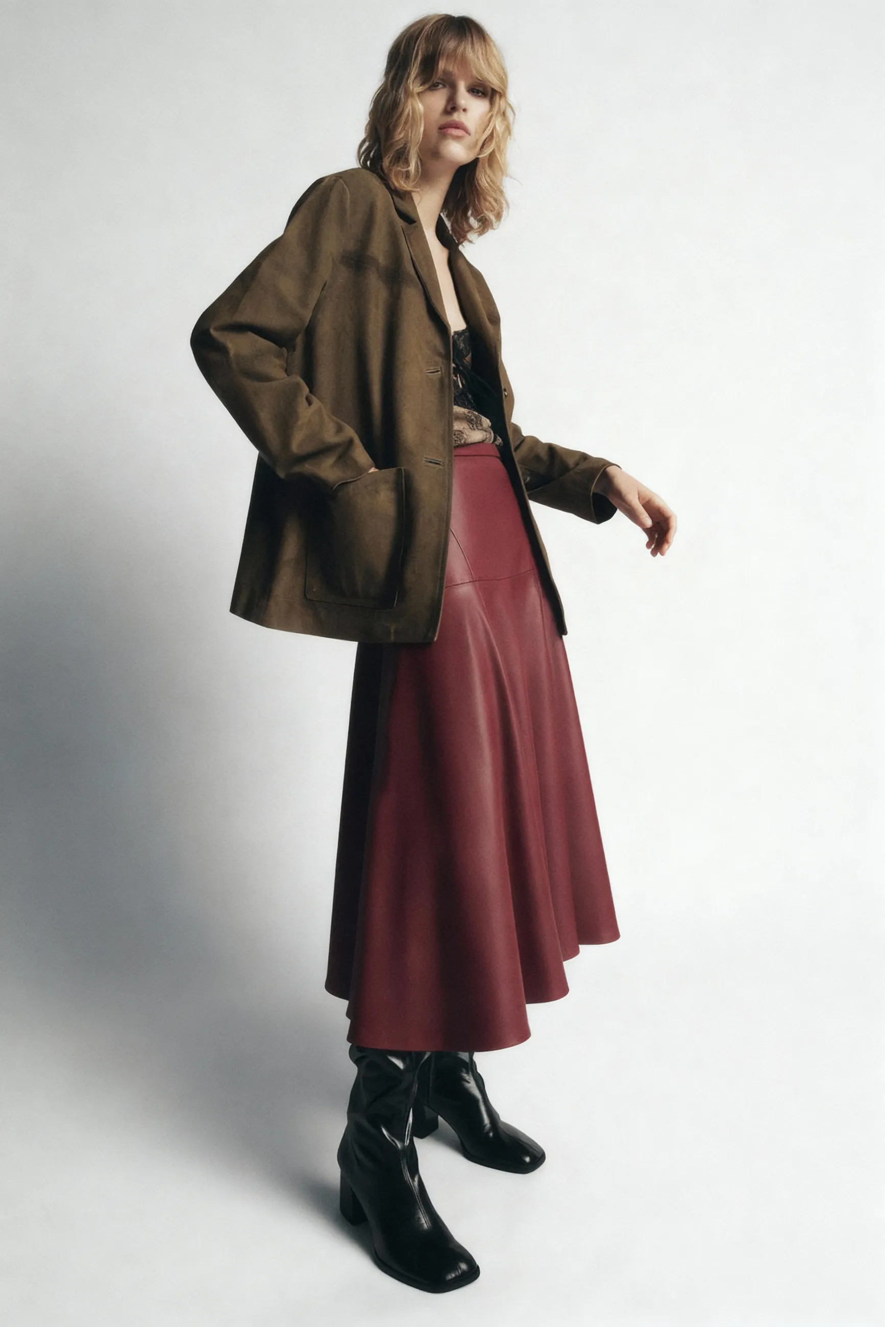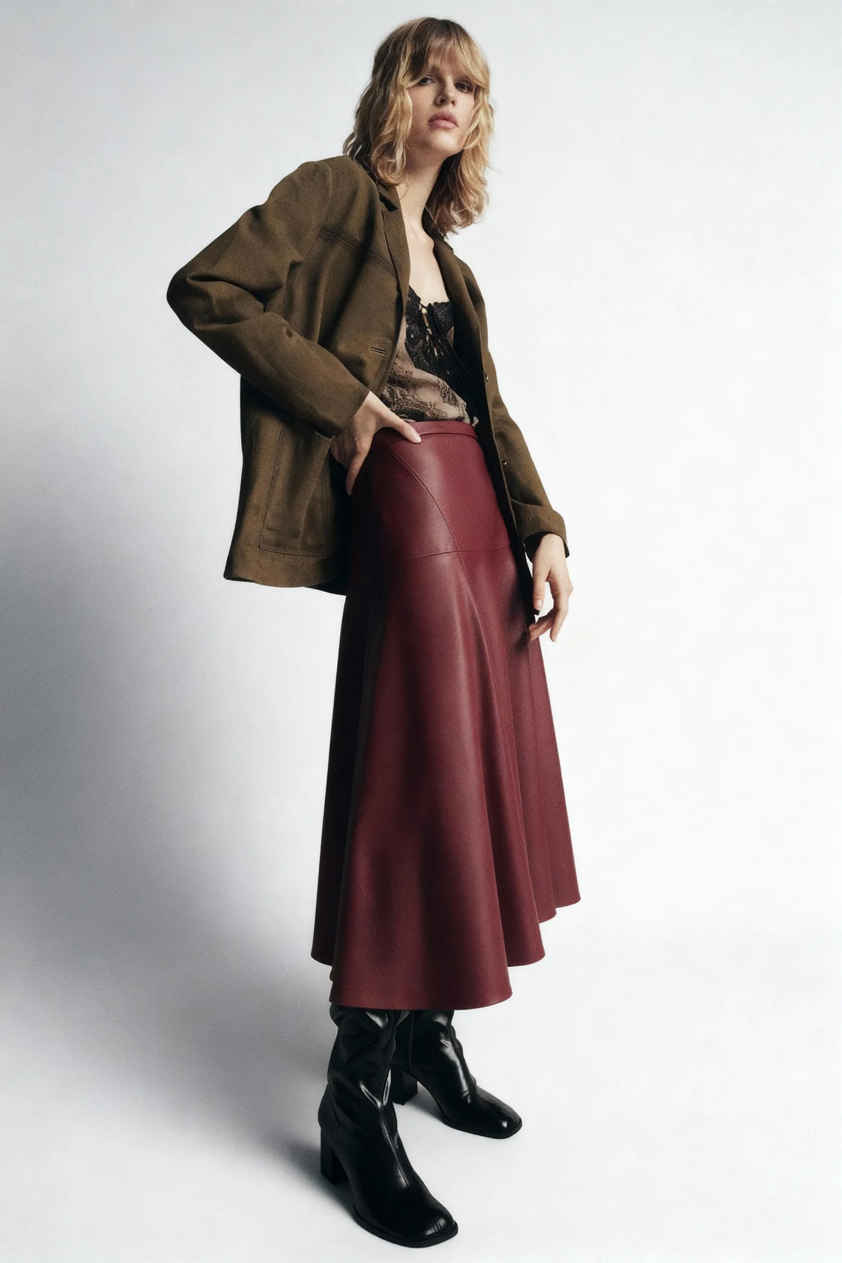 Юбка миди из искусственной кожи ZARA