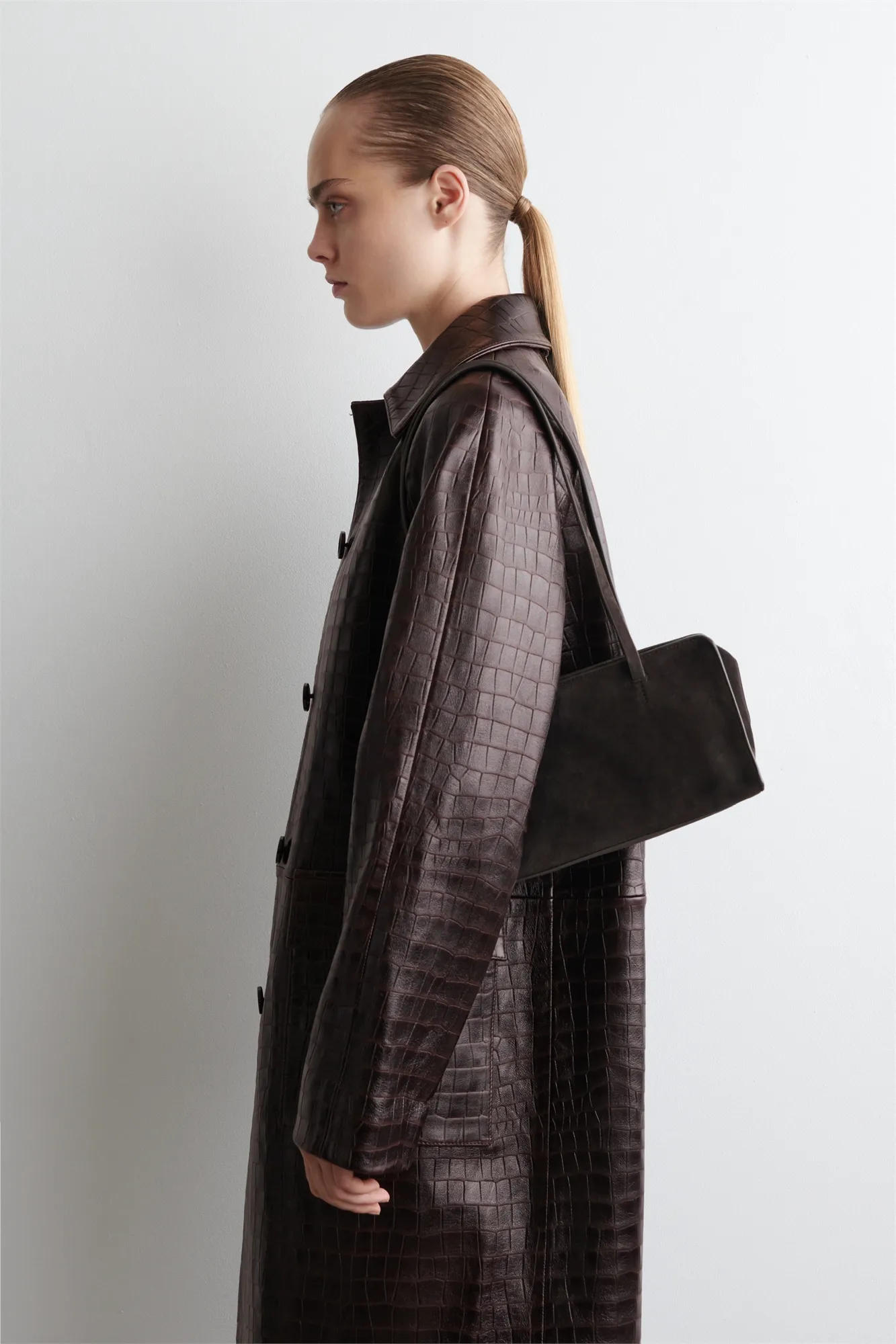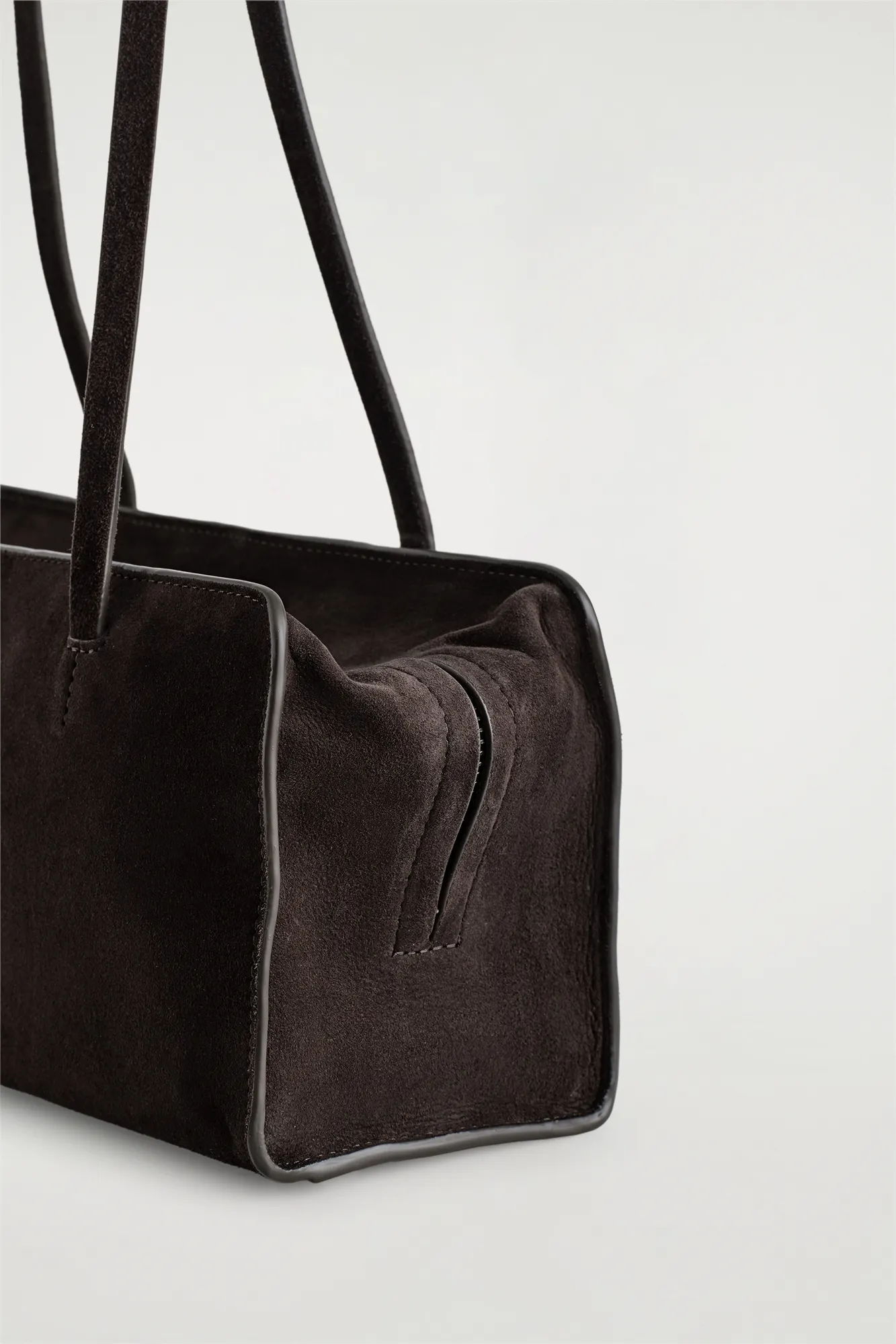 Сумка Marais — новая культовая модель от COS. Этот небольшой аксессуар, изготовленный из мягкой коричневой замши без хрома, имеет удлиненные лямки и прямоугольный силуэт, напоминающий моду 90-х . Усиленные кожаные края придают изделию премиальный вид.