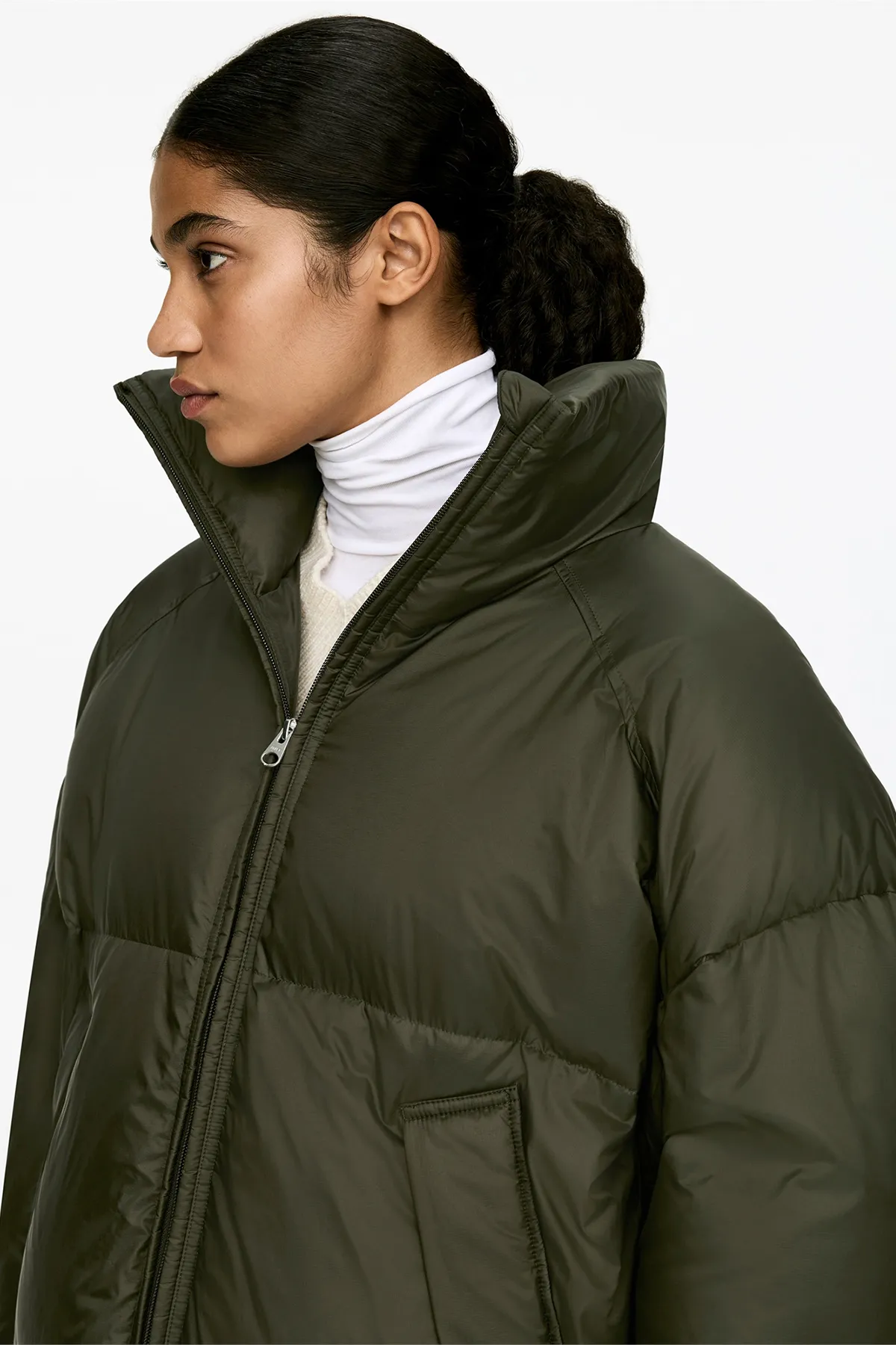 Стеганый пуховик с наполнителем из пуха и пера. Воротник-стойка, застёжка-молния спереди и прорезные карманы на молнии. Низ на кулиске с металлическим фиксатором. Изделия Upcycled Down™ наполнены переработанным пухом и пером Re:Down®. Эти материалы стираются и стерилизуются при высоких температурах без использования химикатов.
