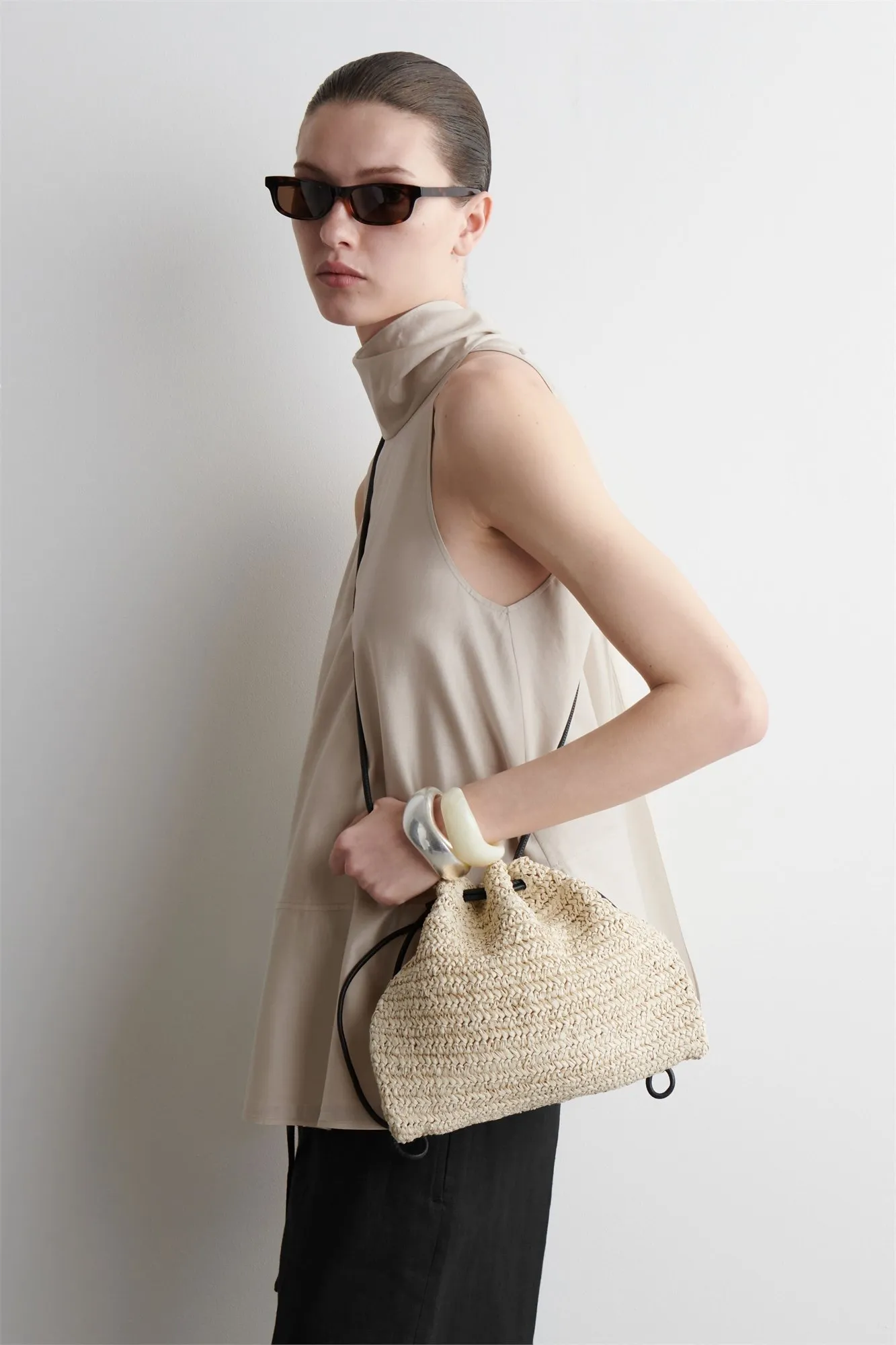 Клатч Cavatelli был переосмыслен для сезона весна/лето и представлен в соломенной версии. Аксессуар имеет завязанные с обеих сторон шнуры, что создает эффектный, слегка присборенный профиль. Носите сумку на кожаном ремешке через плечо или под мышкой.