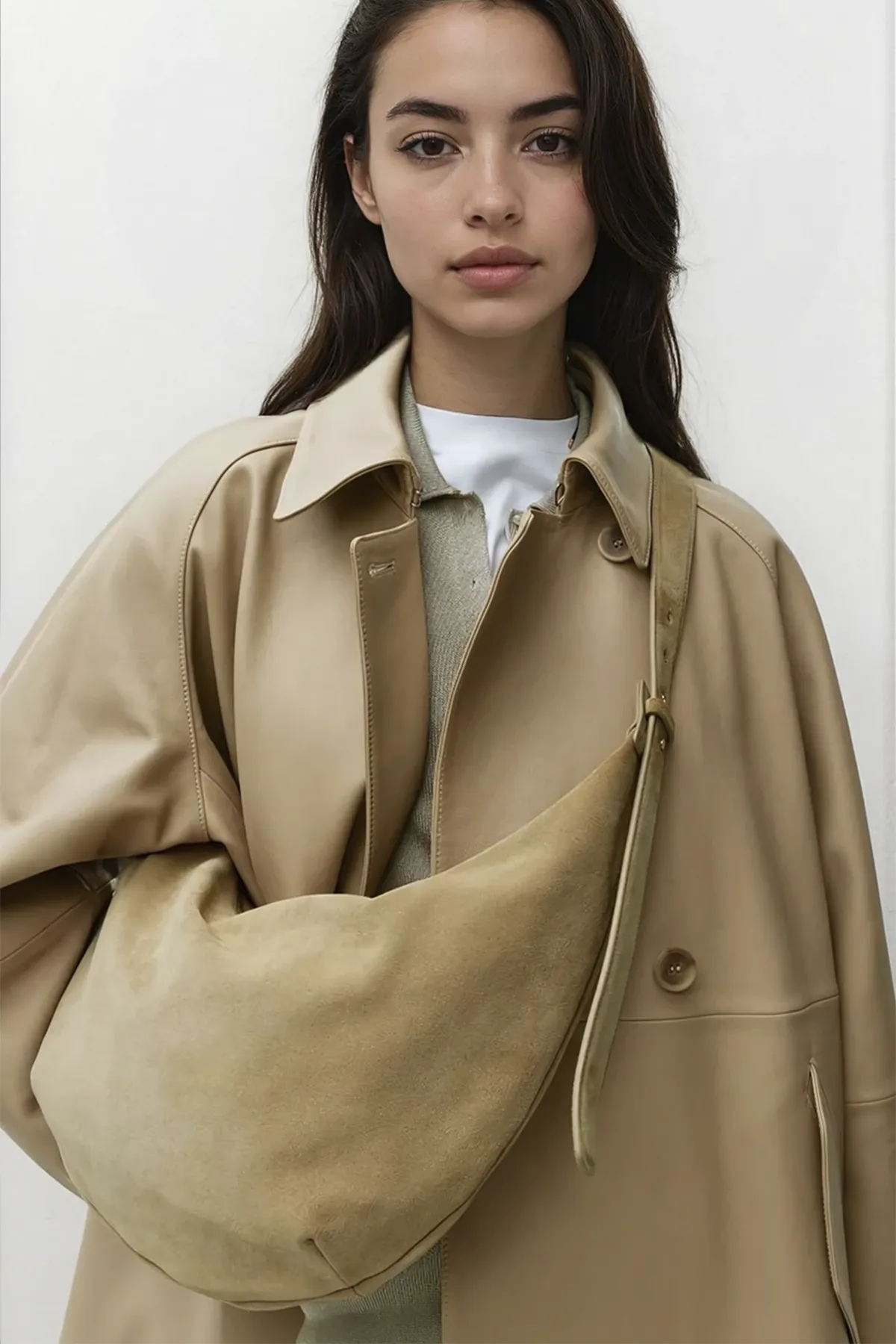 Изогнутая сумка. Универсальная модель, которую можно носить на плече или через плечо. Регулируемый плечевой ремень.