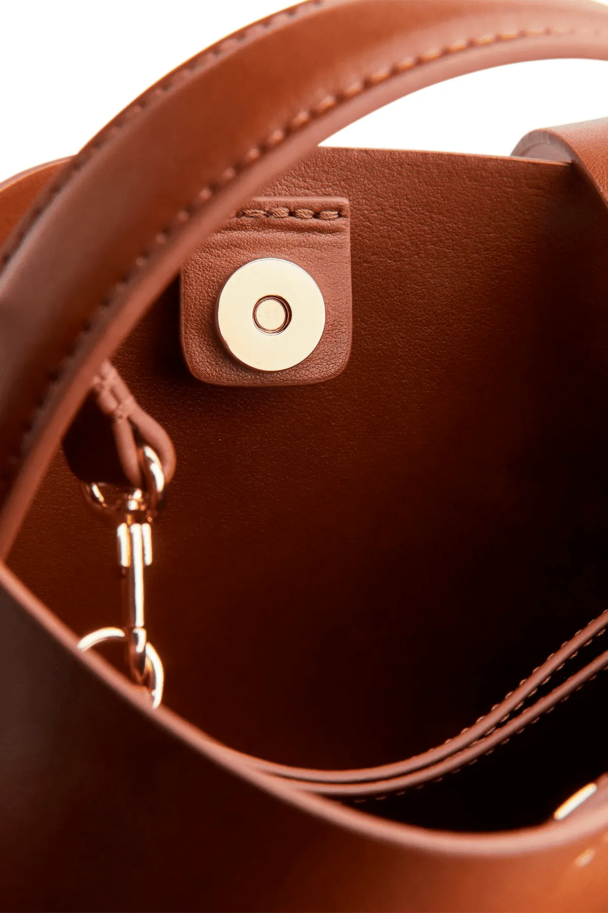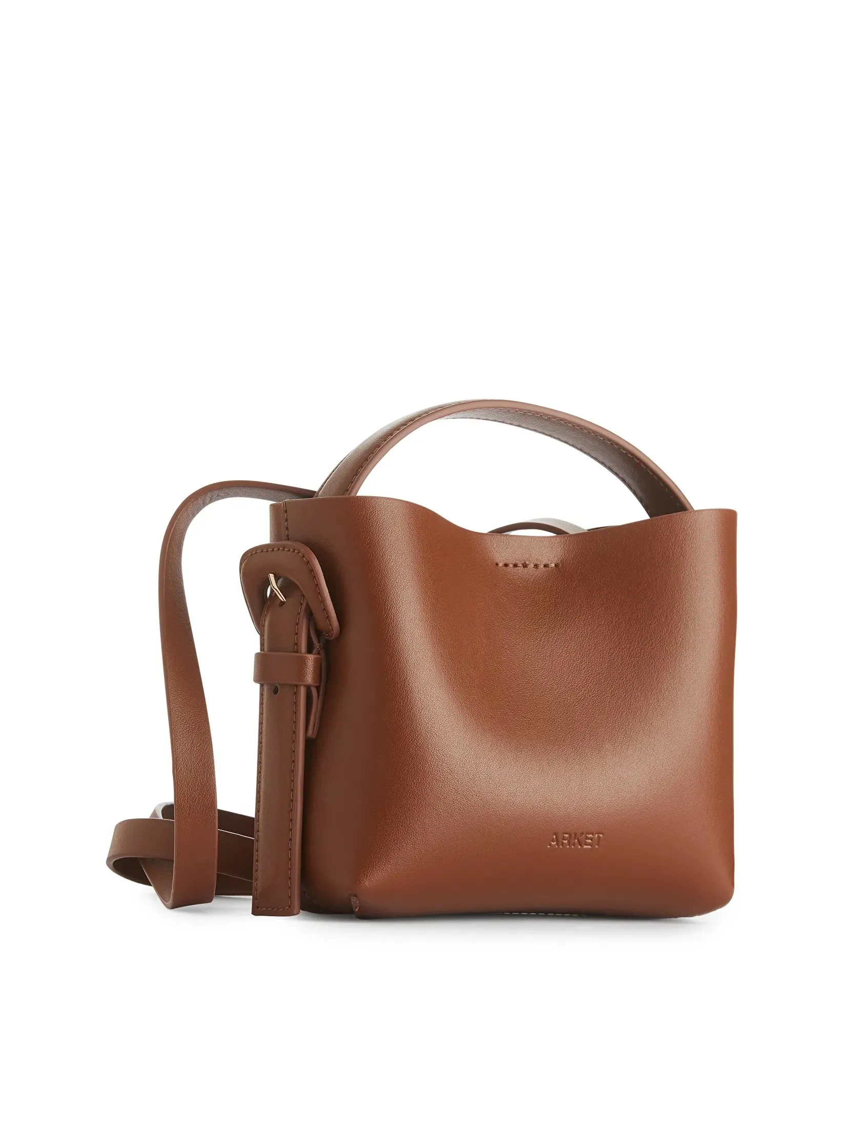 Небольшая сумка Arket через плечо из двойной кожи, прошедшей процесс дубления без использования хрома. Модель с ручкой для переноски и съемным плечевым ремнем. Магнитная застежка и внутренний карман.