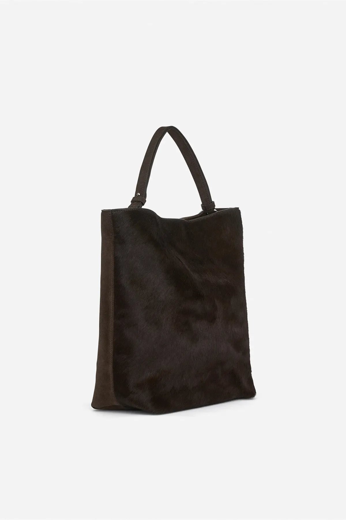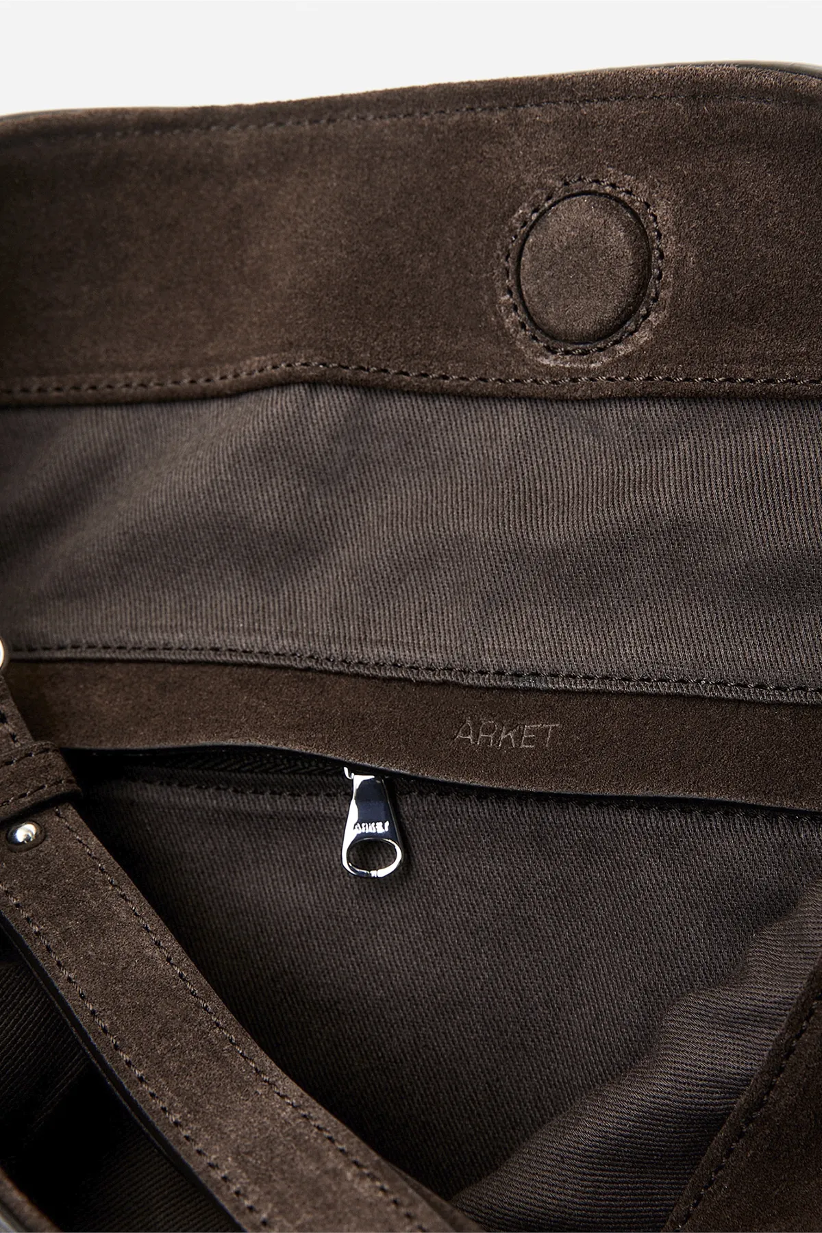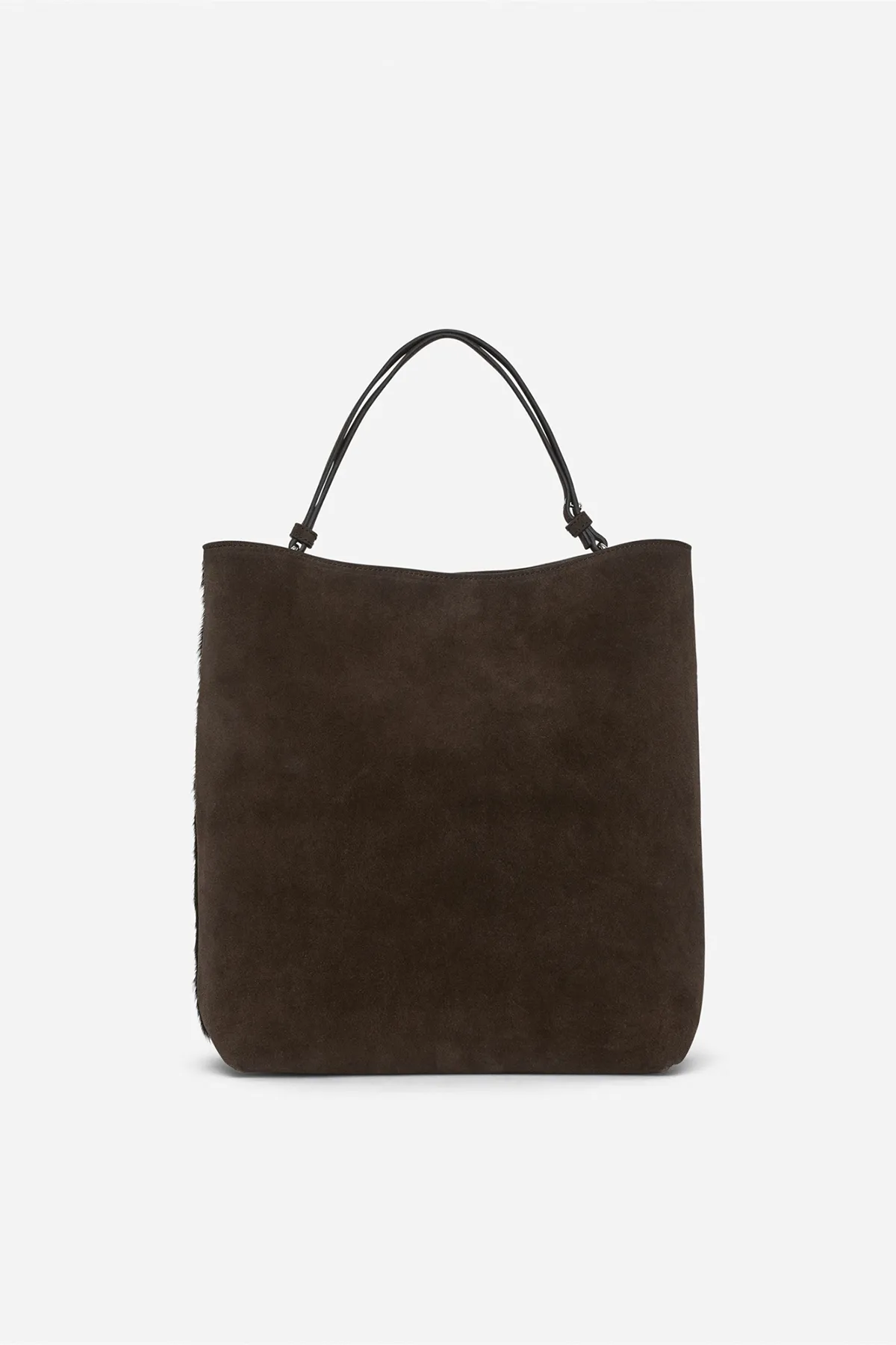 Сумка через плечо с передней частью из ворсистой кожи и задней частью из замши. Магнитная застежка и внутренний карман на молнии.