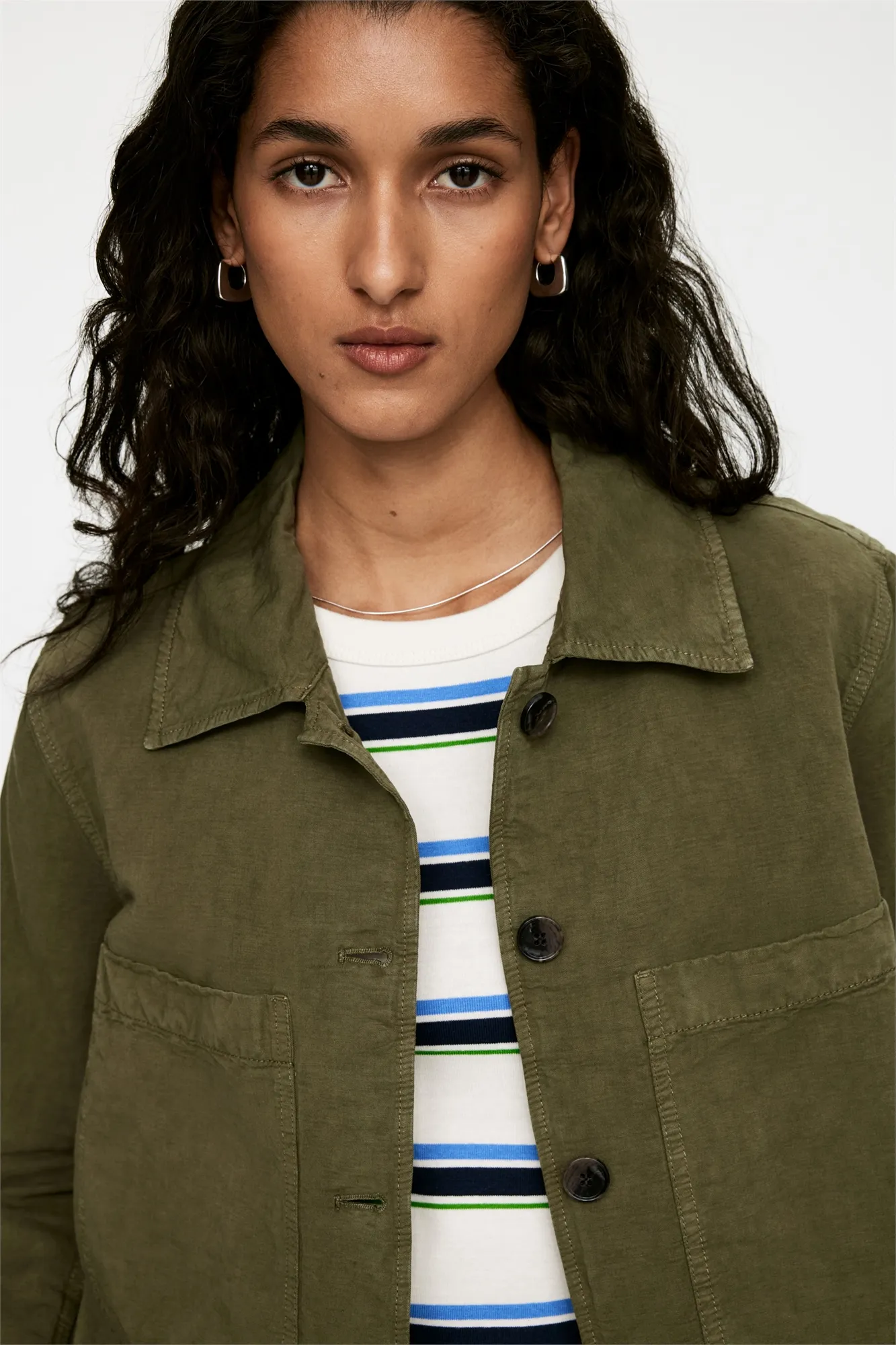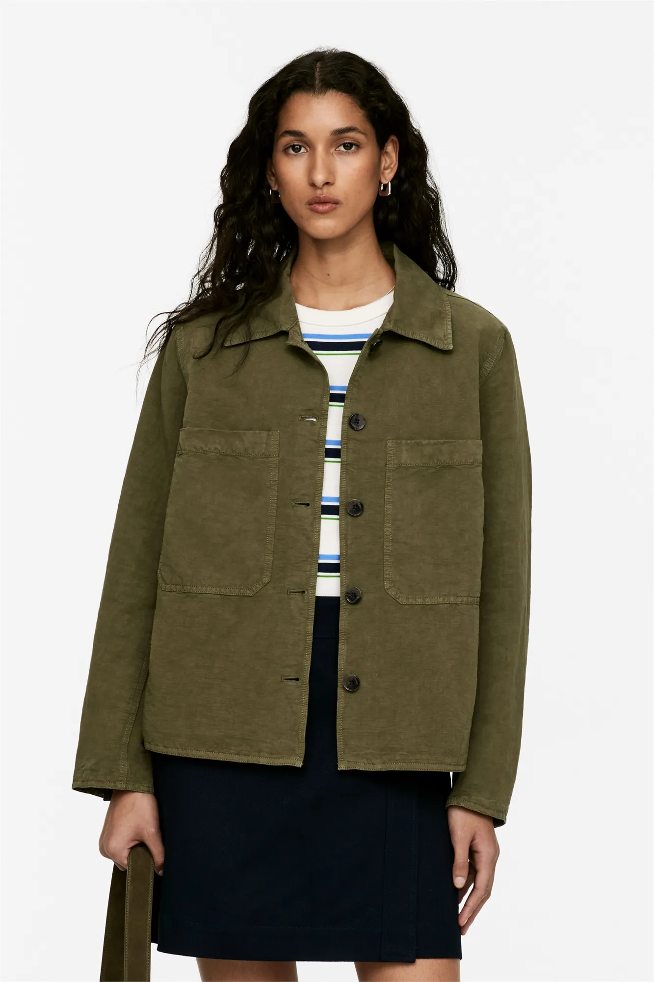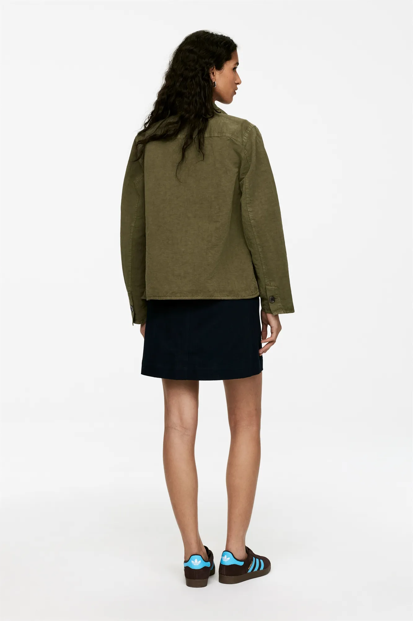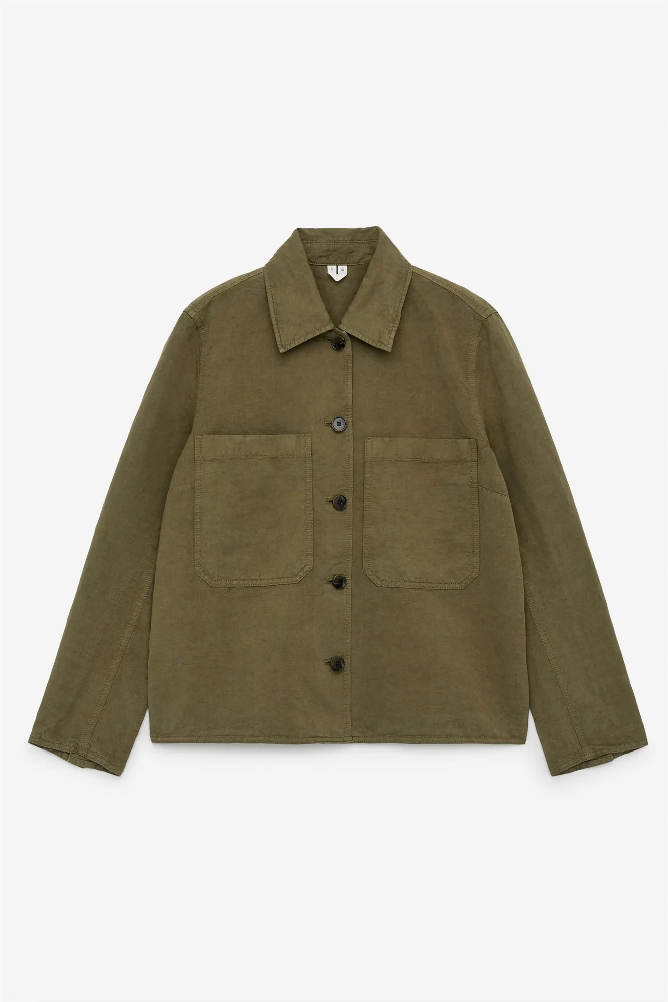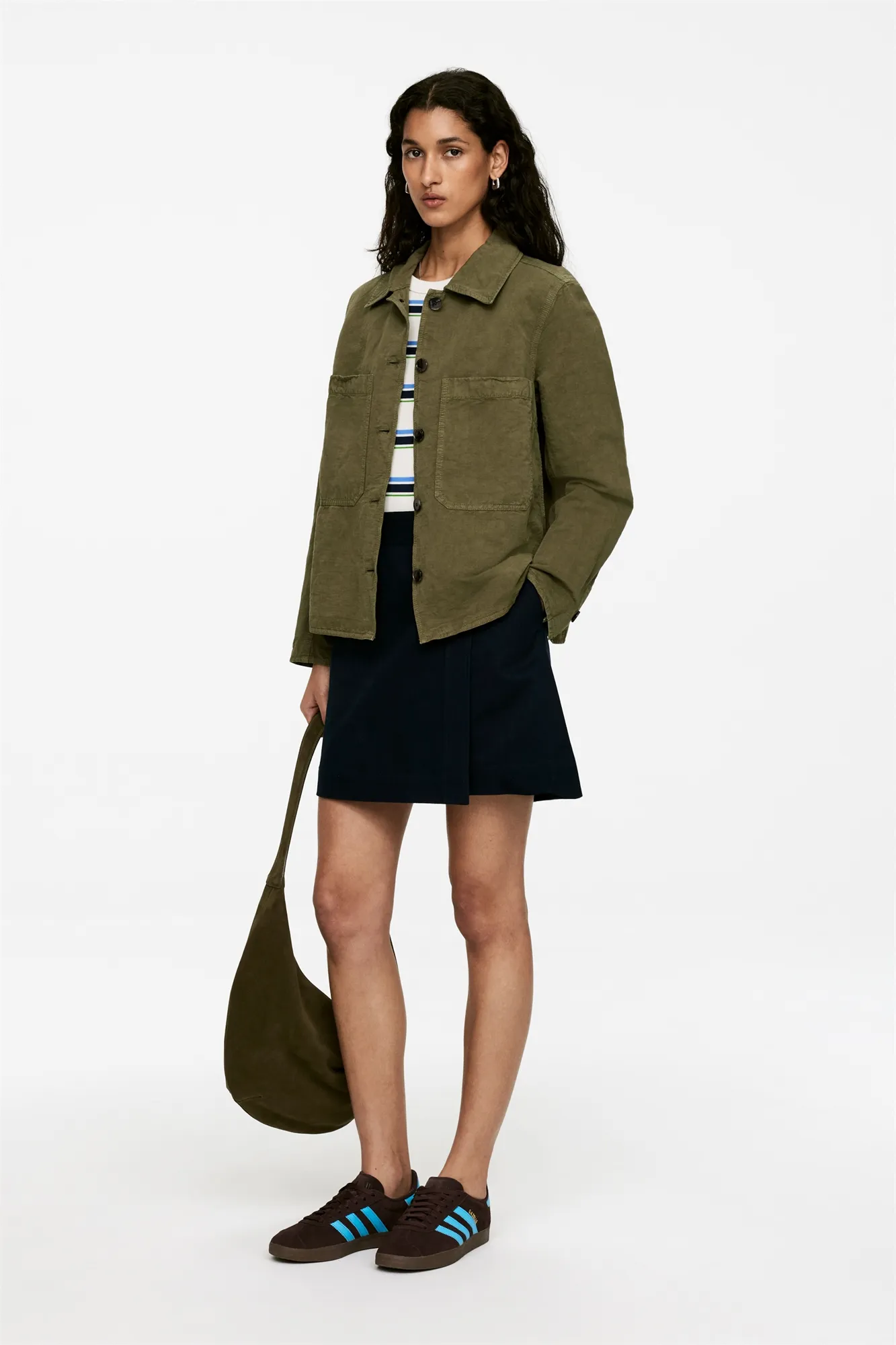 Эта верхняя рубашка вдохновлена классическим стилем рабочей одежды и имеет короткий свободный крой. Имеет просторный накладной нагрудный карман и застегивается по центру на пуговицы контрастного цвета.