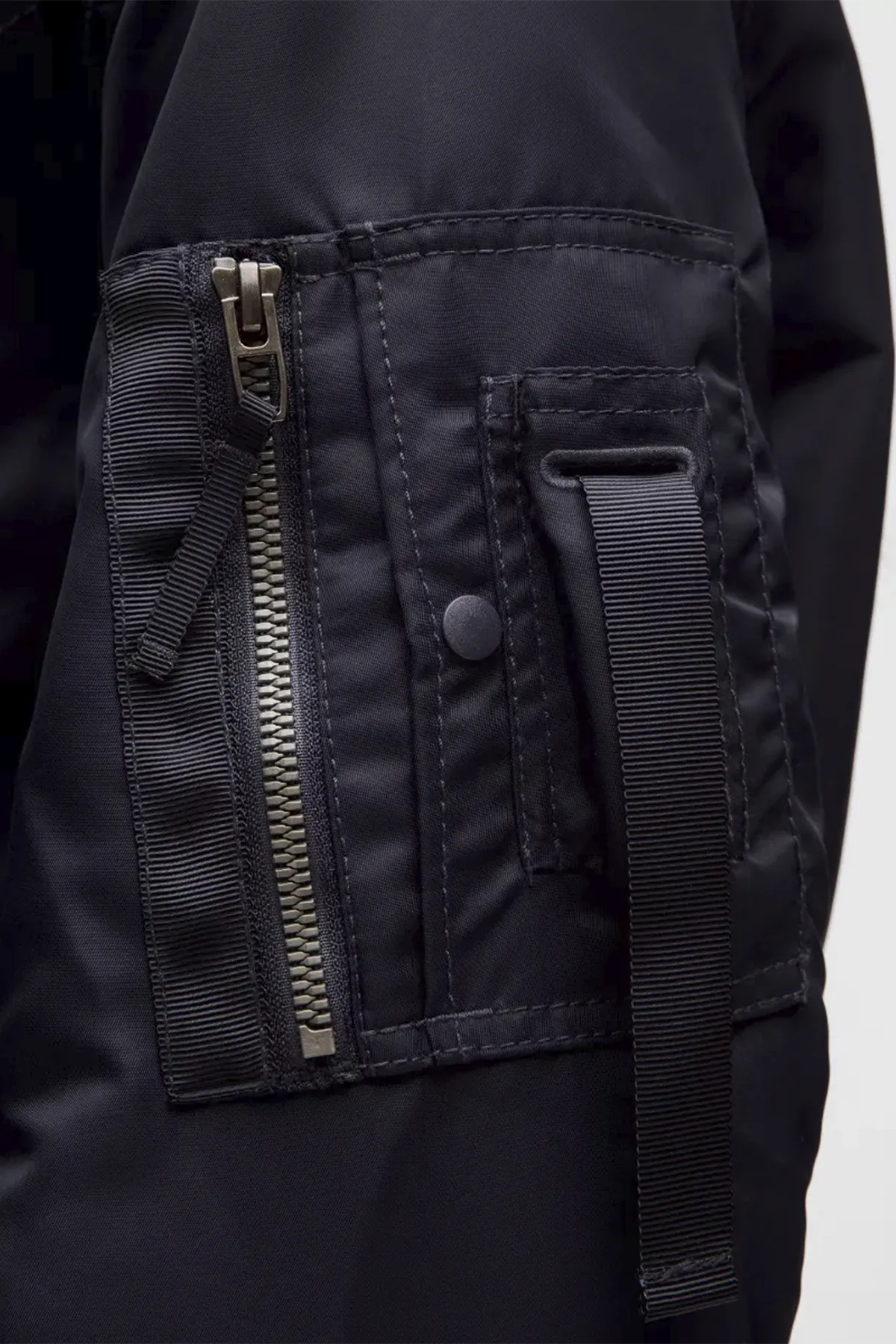 - Карман на молнии на рукаве с отделением для карт на кнопке и держателем для бальзама для губ.