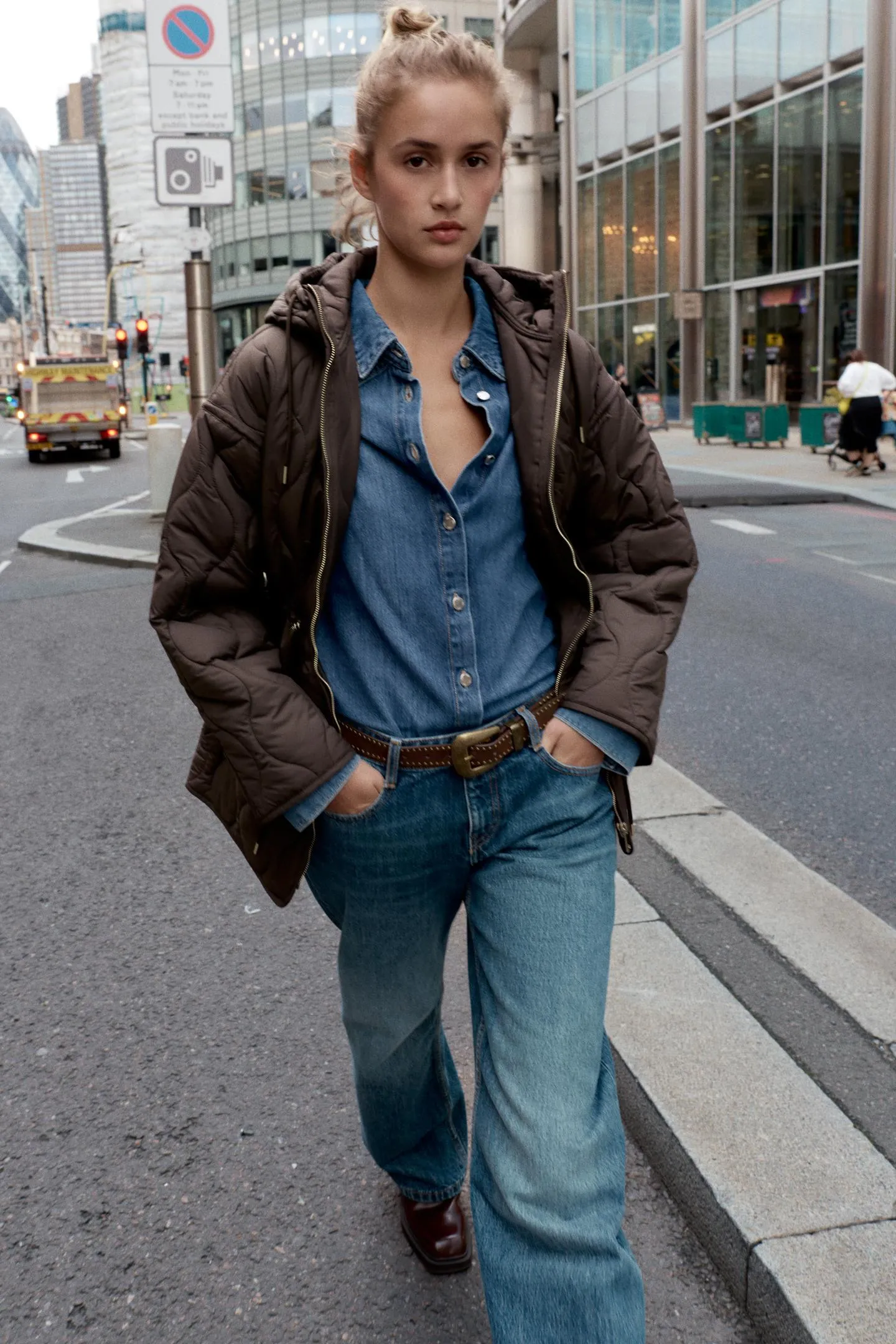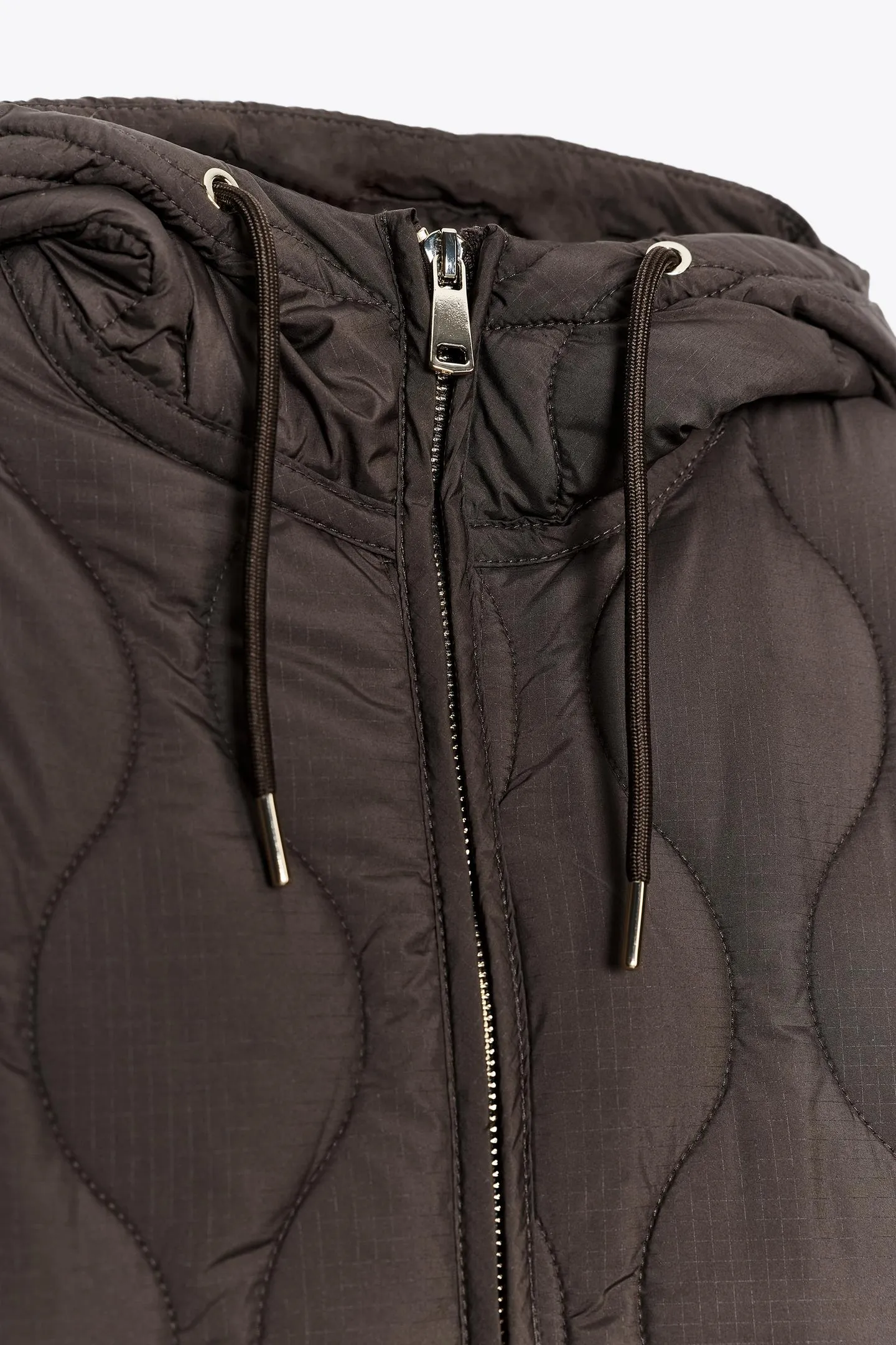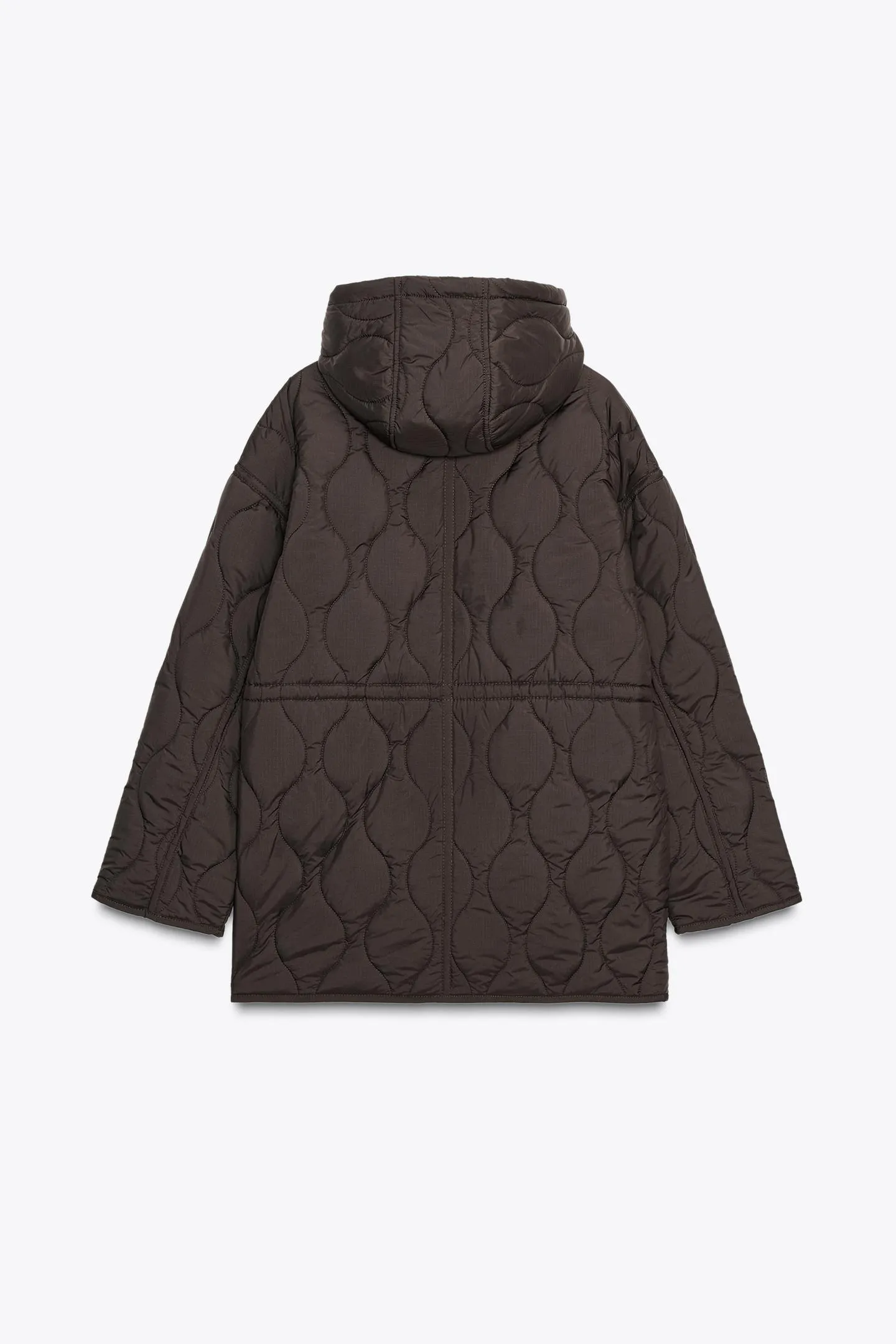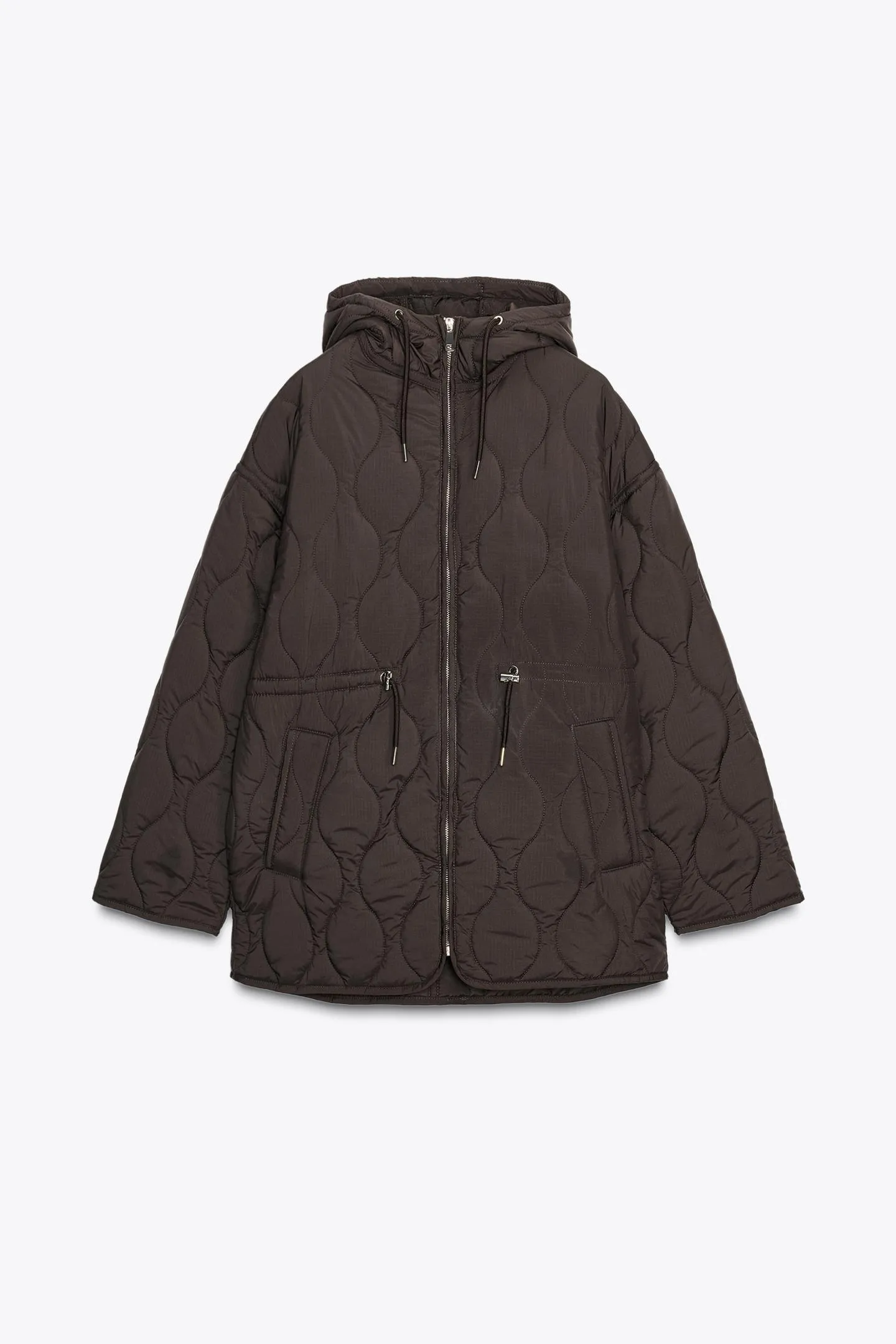 Куртка с высоким воротом, капюшоном, регулируемым на шнурке, и длинным рукавом. Талия регулируется на шнурке. Прорезные карманы спереди. Застежка на молнию спереди. Ткань отталкивает воду и помогает защитить вас от непродолжительного дождя.