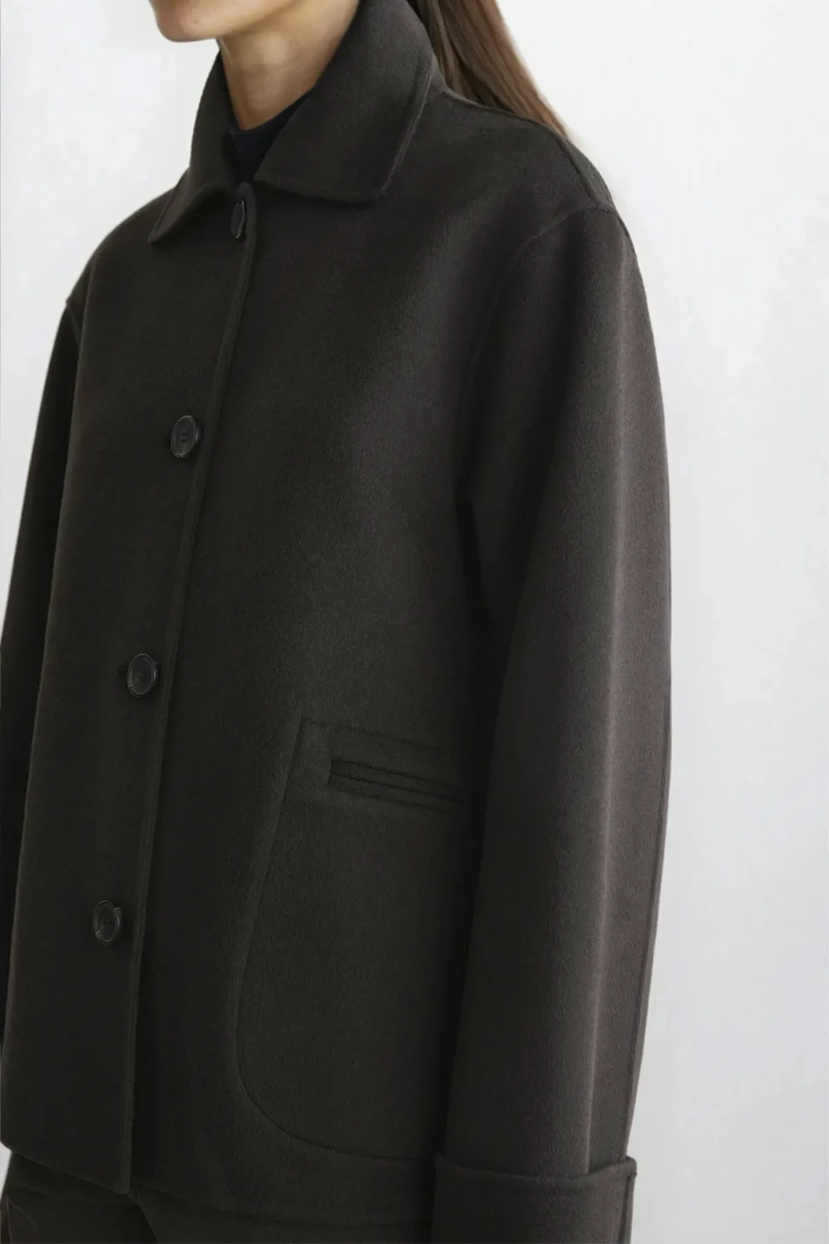 Капсульный гардероб - сезонное обновление классических моделей COS. Эта коричневый жакет, сшитый из шерсти RWS и лиоцелла TENCEL™, имеет двустороннюю отделку для превосходного вида. Он также дополнен заостренным воротником и прорезными карманами .