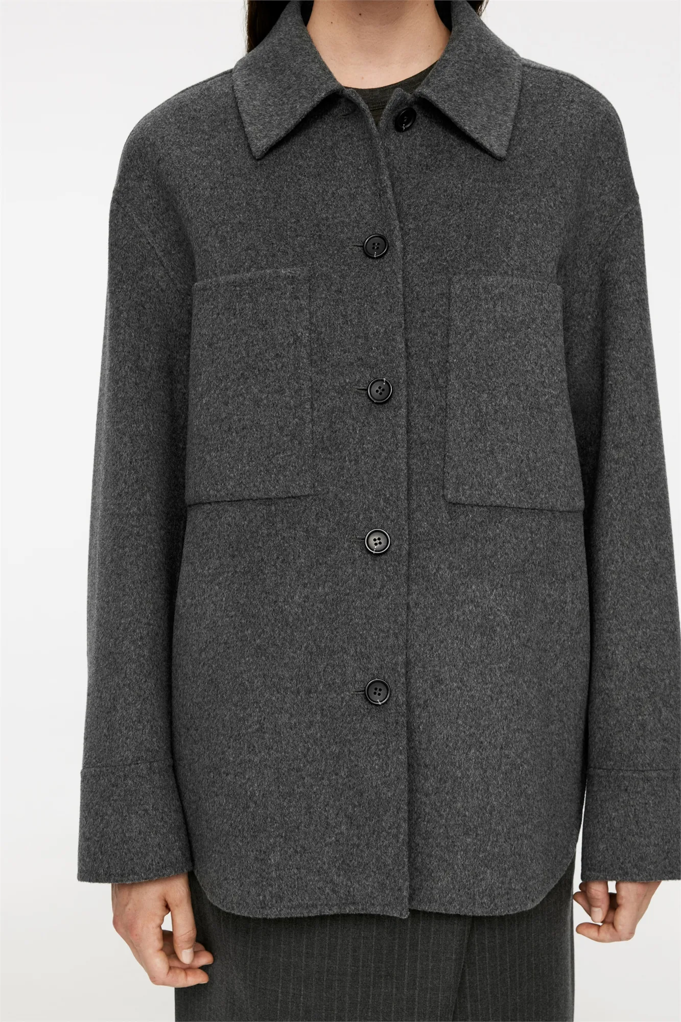 Рубашка из шерсти doubleface и лиоцелла. Накладные нагрудные карманы и боковые разрезы.