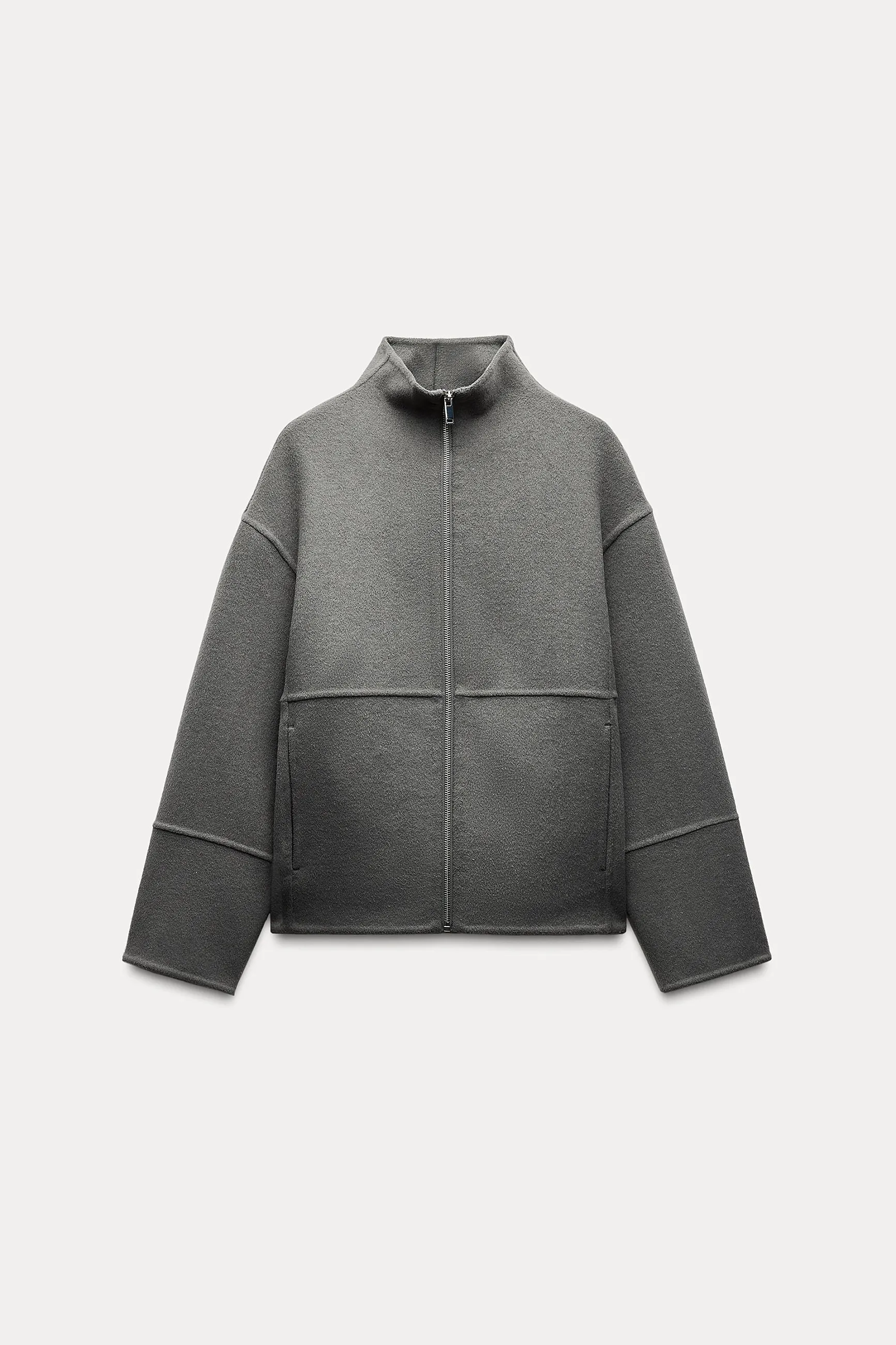 Куртка из смесовой шерсти с высоким воротником и длинными рукавами. С прорезными карманами спереди и металлической застежкой-молнией.