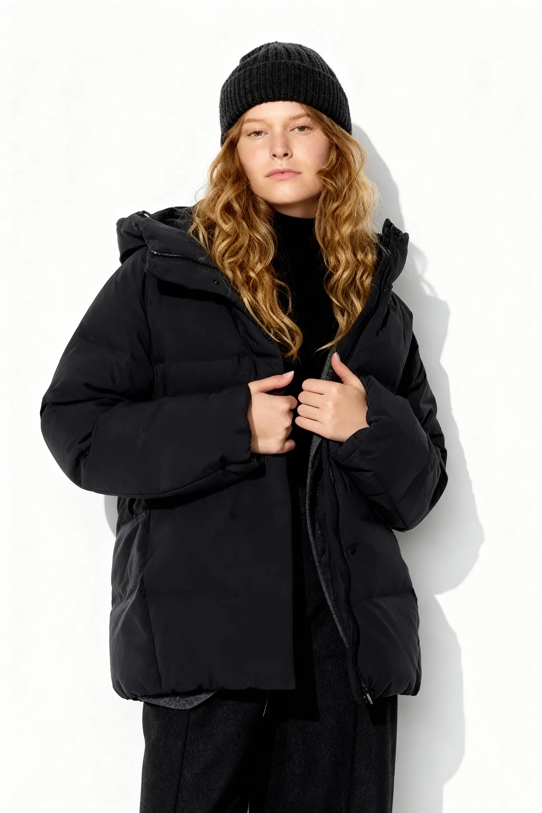 - Капюшон и мягкий воротник обеспечивают дополнительное тепло в области шеи.