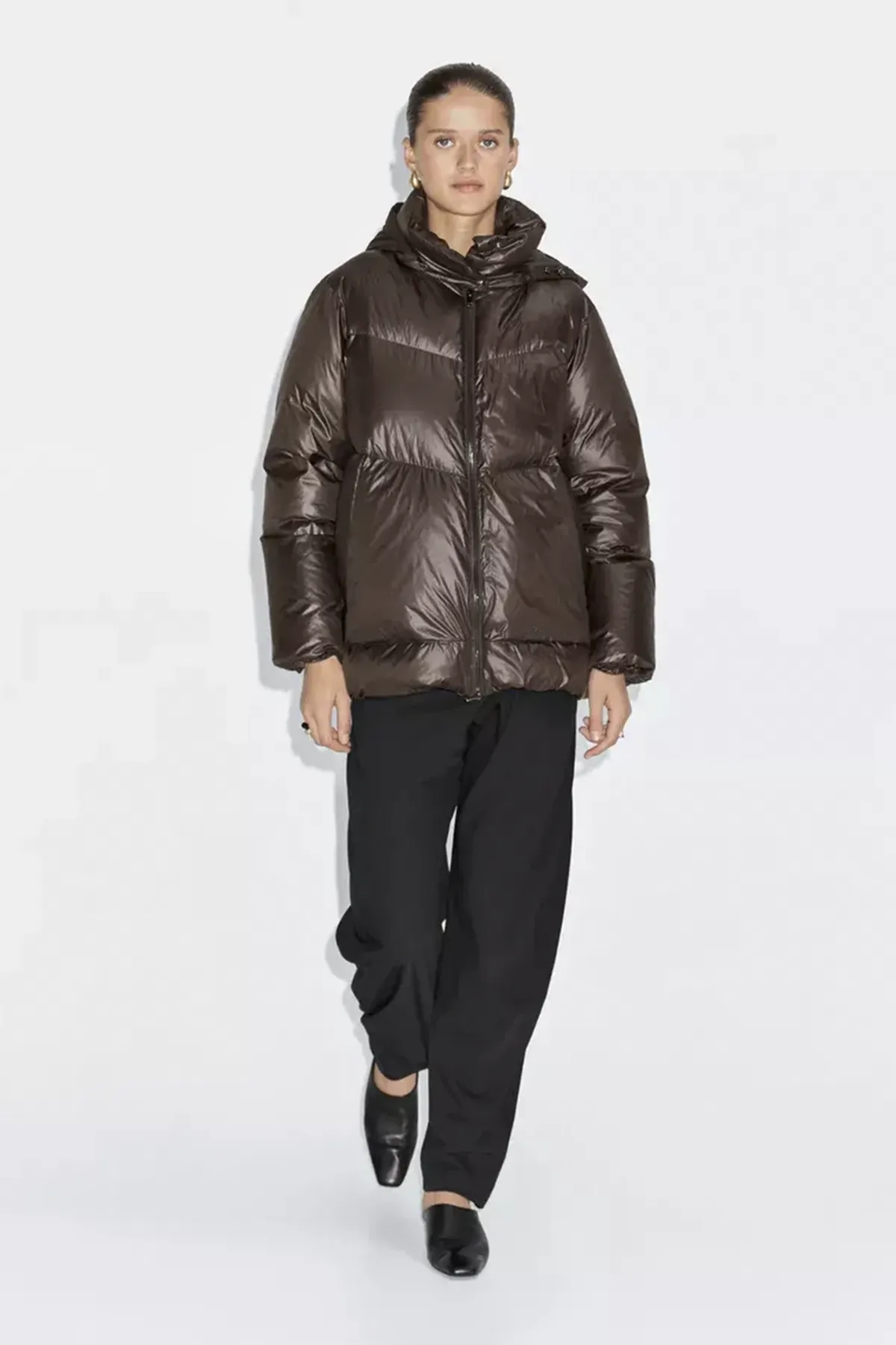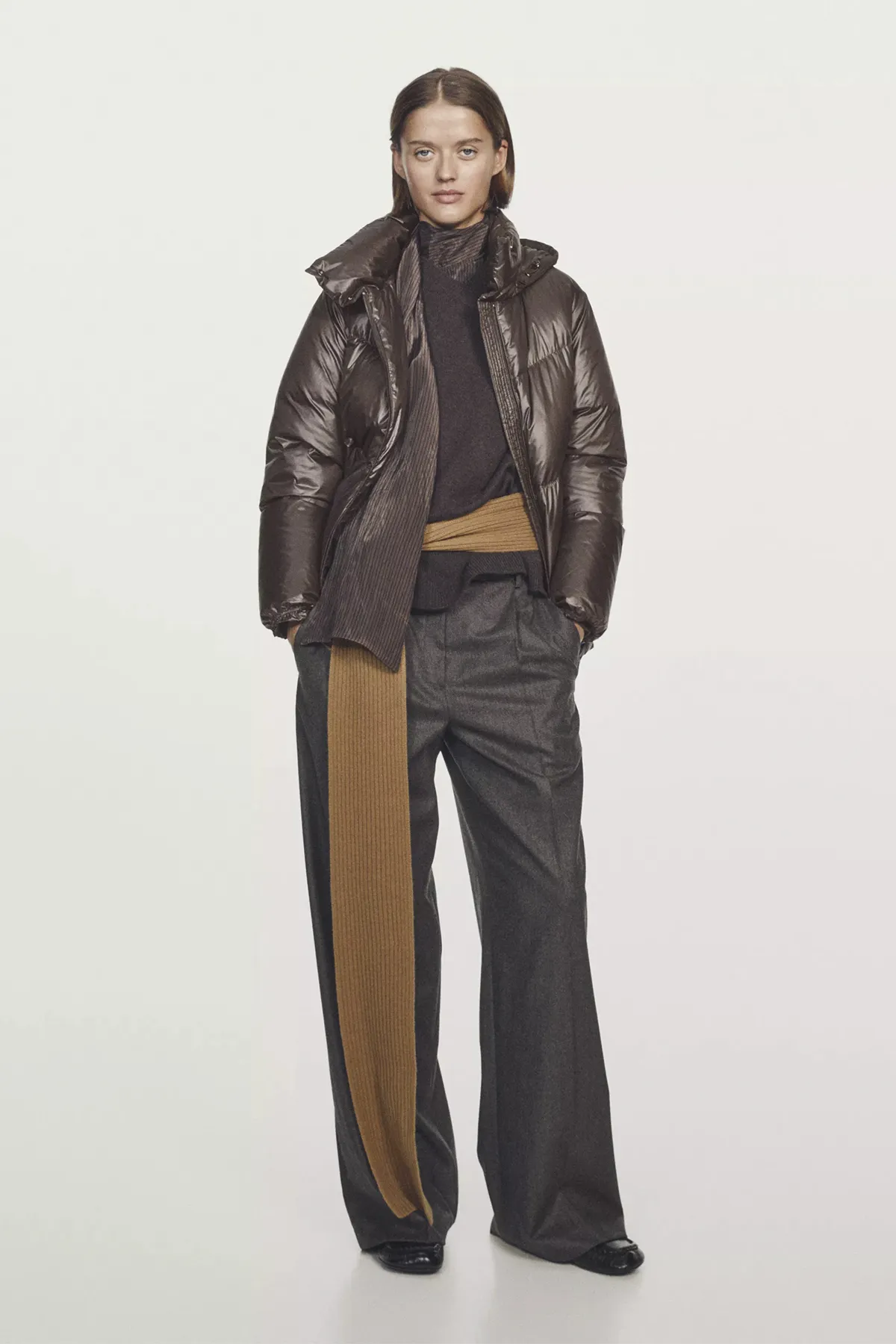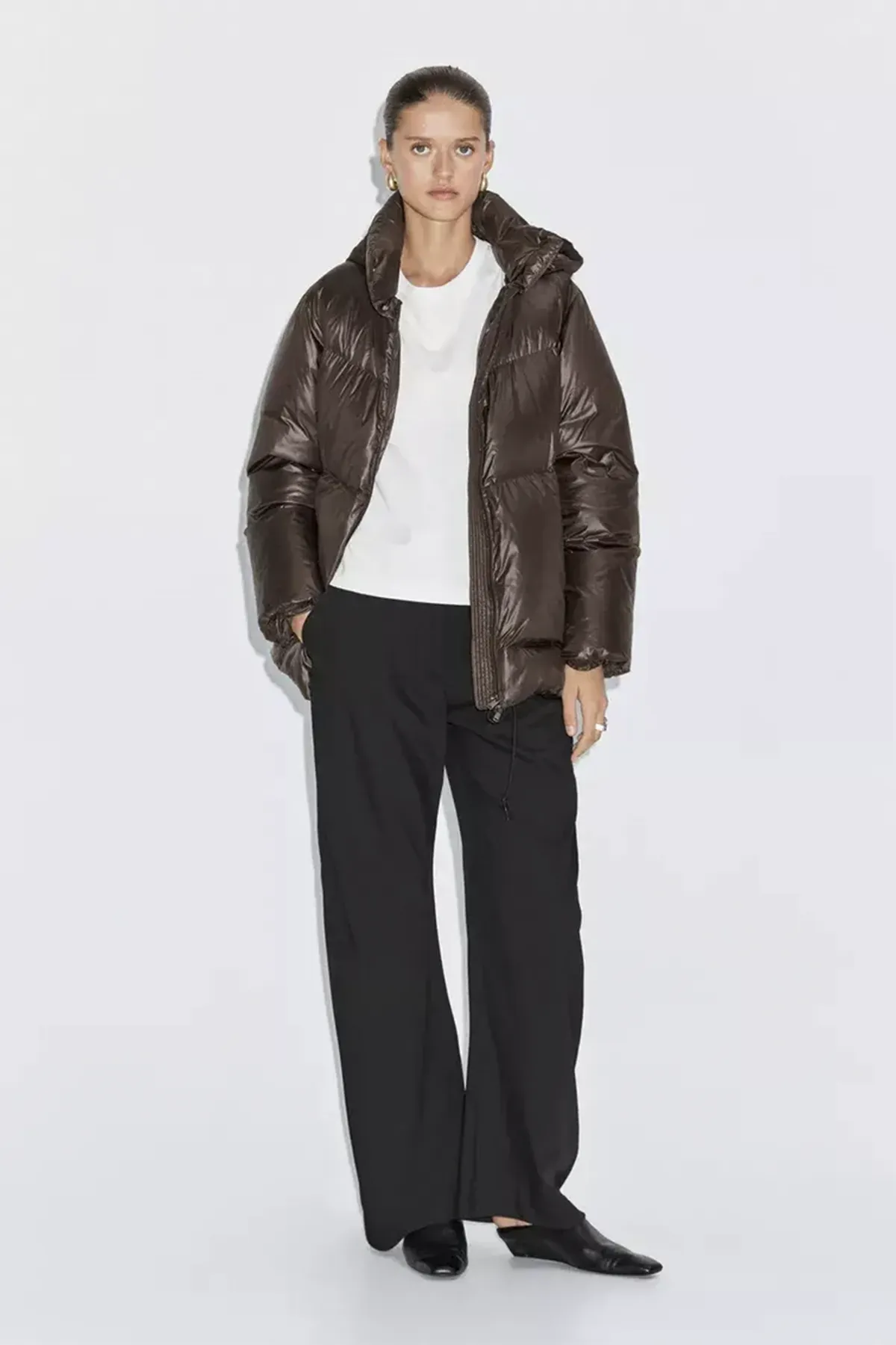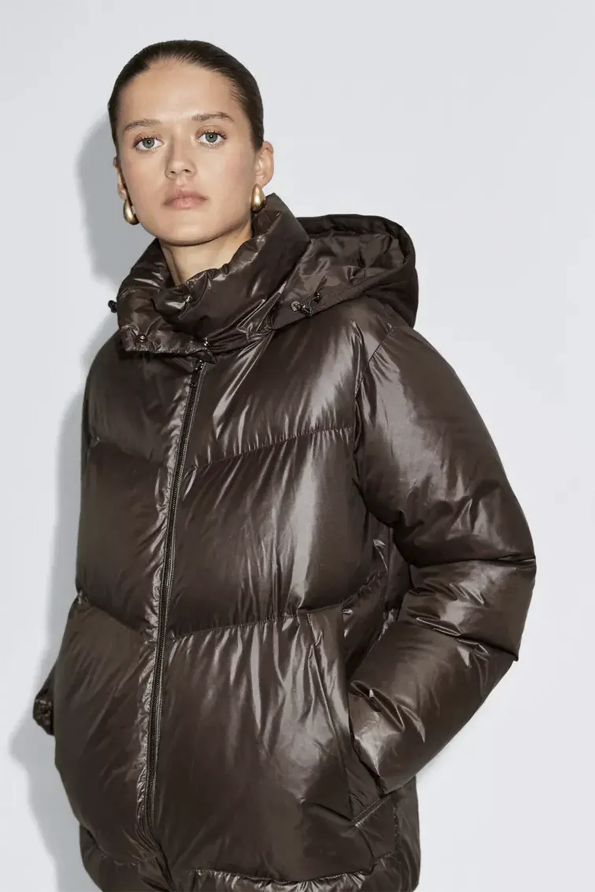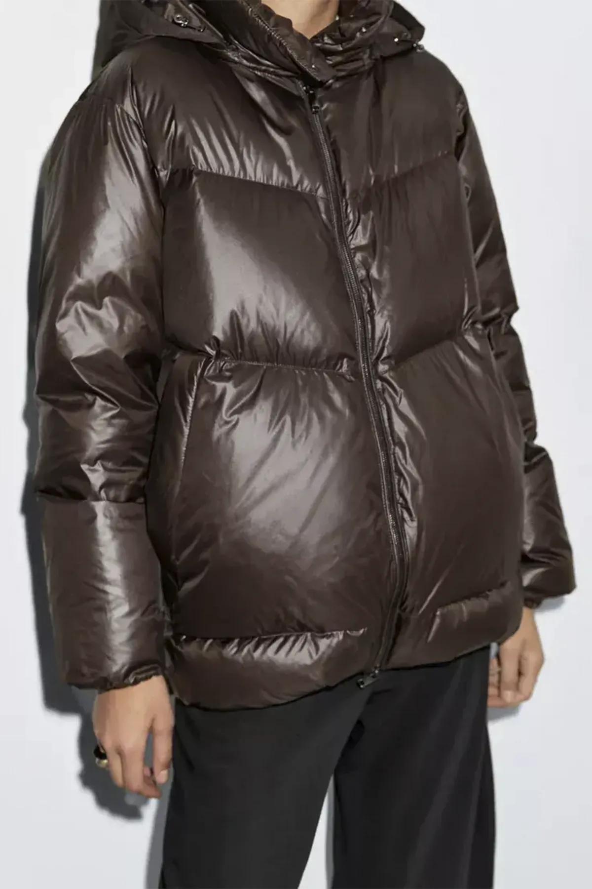 Блестящий водоотталкивающий пуховик со съемным капюшоном MASSIMO DUTTI