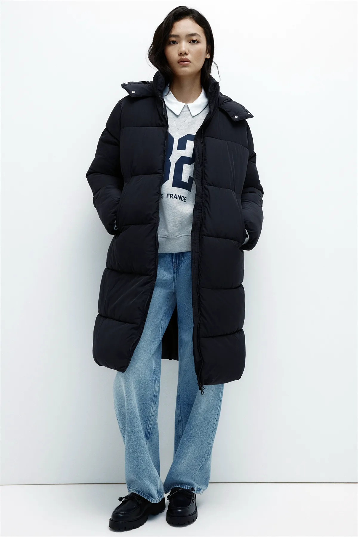 Длинный стеганый пуховик H&M
